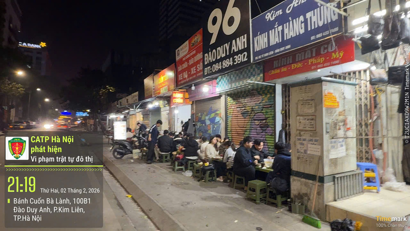 Vi phạm sử dụng trái phép vỉa hè để kinh doanh dịch vụ ăn uống tại trước số 96 Đào Duy Anh, phường Kim Liên. Ảnh: CAHN