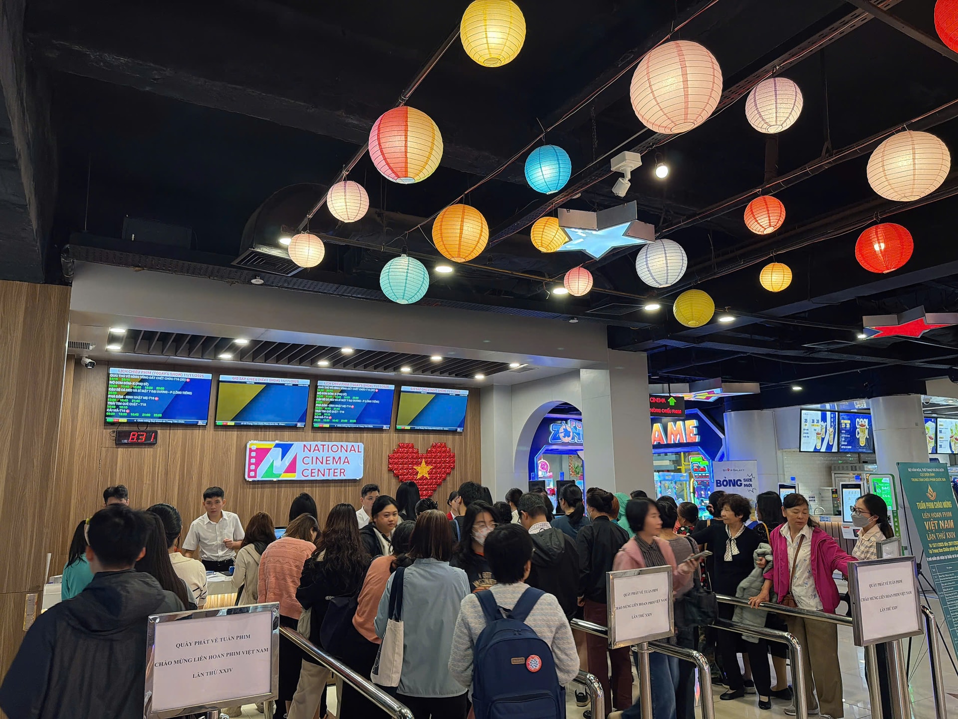 Khán giả xếp hàng nhận vé miễn phí tại Trung tâm Chiếu phim quốc gia. Ảnh: BTC