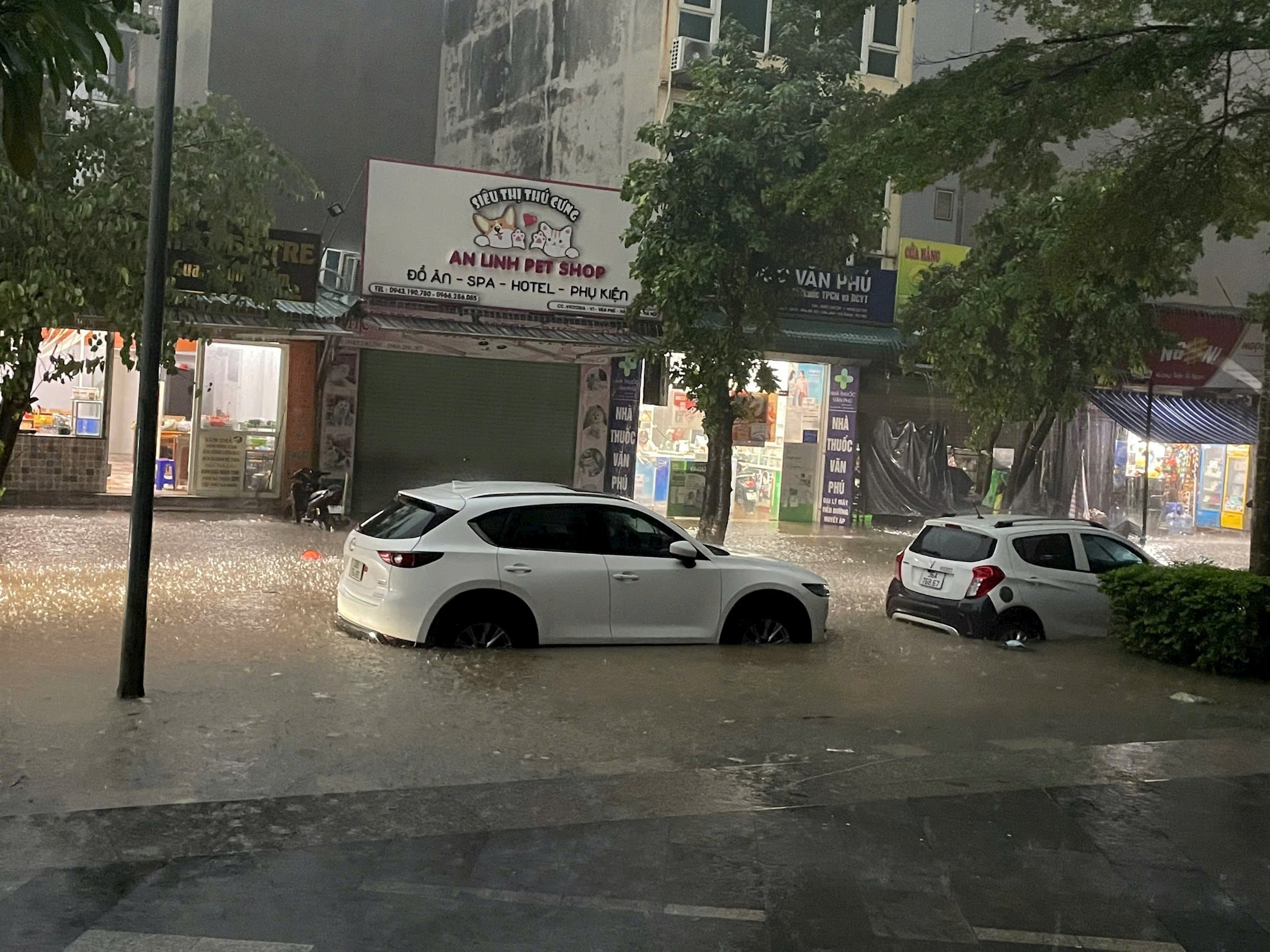 Tại các tuyến đường như Nguyễn Xiển, Nguyễn Văn Lộc, Văn Phú, Tố Hữu, Trần Hữu Dực, Ecohome 3 (Đông Ngạc) và ngõ 42 Giang Văn Minh, nước dâng cao từ 0,3 đến hơn 1 mét.