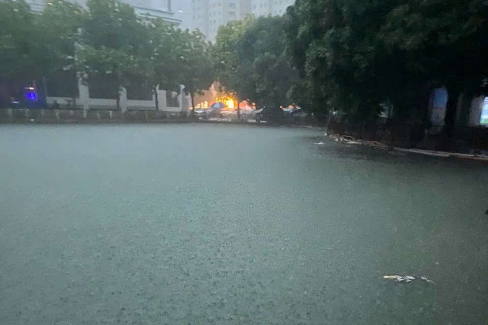 Văn Phú - La Khê (Hà Đông) chìm trong biển nước đêm mưa lớn. Ảnh: Mạnh Hưng