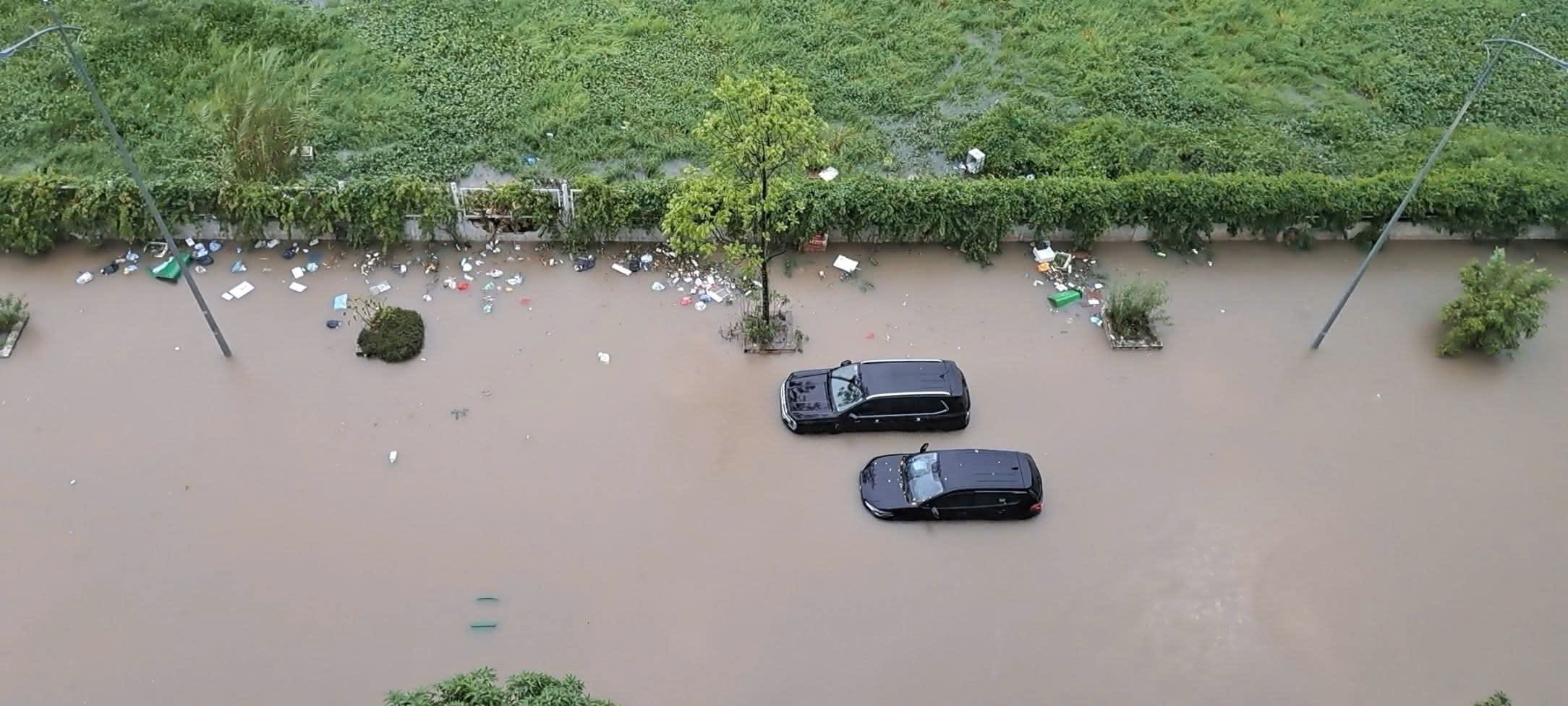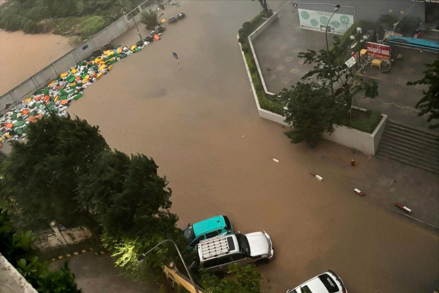 Nước dâng nhanh ở Ecohome 3 (Đông Ngạc), người dân không kịp ứng phó. Ảnh: Bách Hợp
