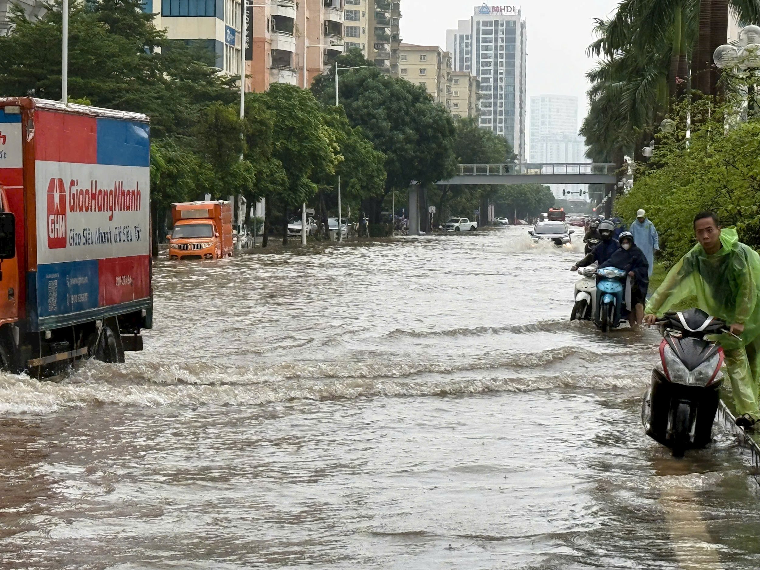 Ảnh hưởng hoàn lưu bão Matmo khiến khu vực Bắc Bộ mưa lớn kéo dài từ tối 6/10. Lượng mưa dồn dập trong thời gian ngắn đã khiến nhiều tuyến phố Hà Nội ngập sâu, giao thông hỗn loạn, hàng trăm phương tiện chết máy, người dân chật vật di chuyển.