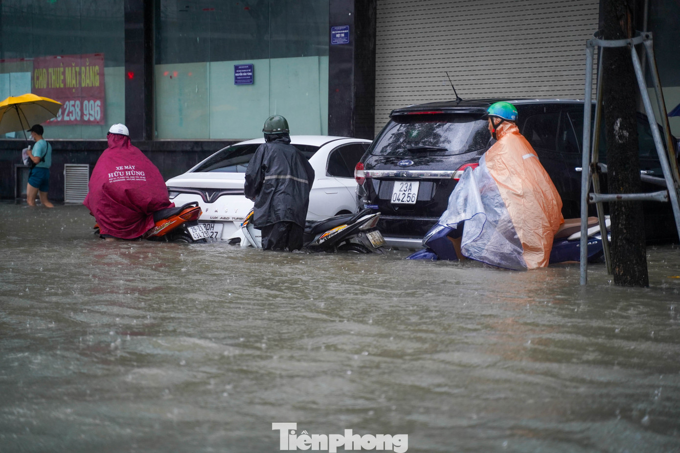 Khu vực đường Nguyễn Tuân nước ngập ngang đùi người lớn. Nhiều phương tiện cố di chuyển đã bị chết máy.