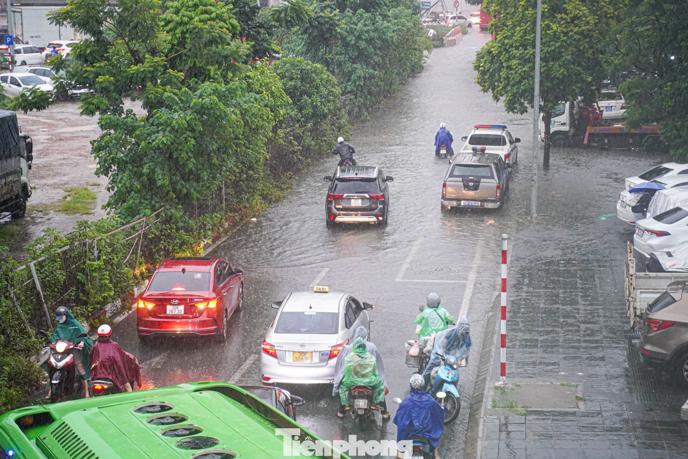 Khu vực đường Nguyễn Trãi, đoạn ngã ba Nguyễn Tuân và Trường ĐH KHXH&NV chìm trong biển nước.
