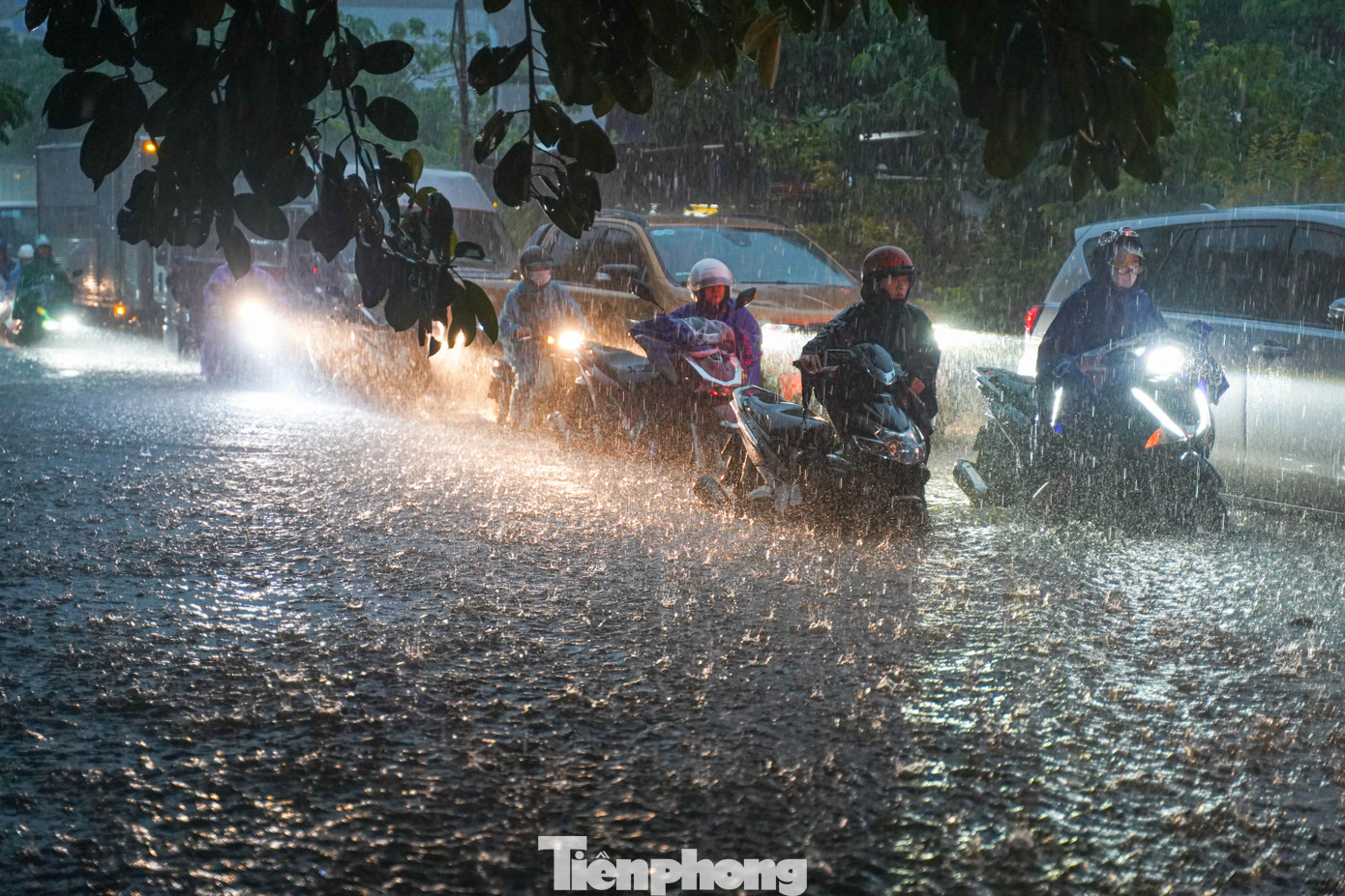 Có những đoạn nước ngập cao đến nửa bánh xe.