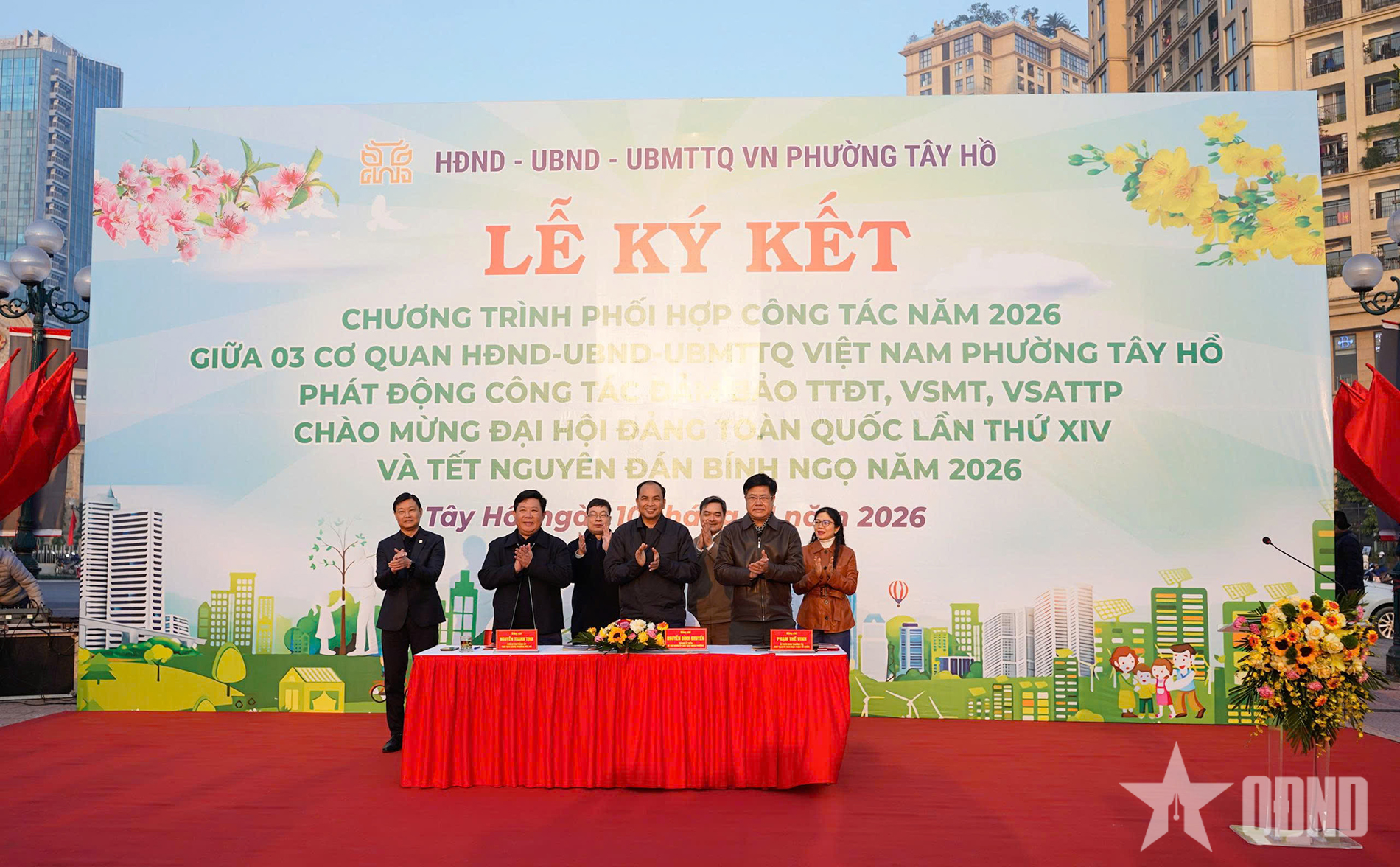 Ngay sau nghi thức ký kết, các lực lượng trên địa bàn phường đã đồng loạt ra quân bảo đảm trật tự đô thị, vệ sinh môi trường và an toàn thực phẩm chào mừng Đại hội Đảng toàn quốc lần thứ XIV và Tết Nguyên đán Bính Ngọ 2026.