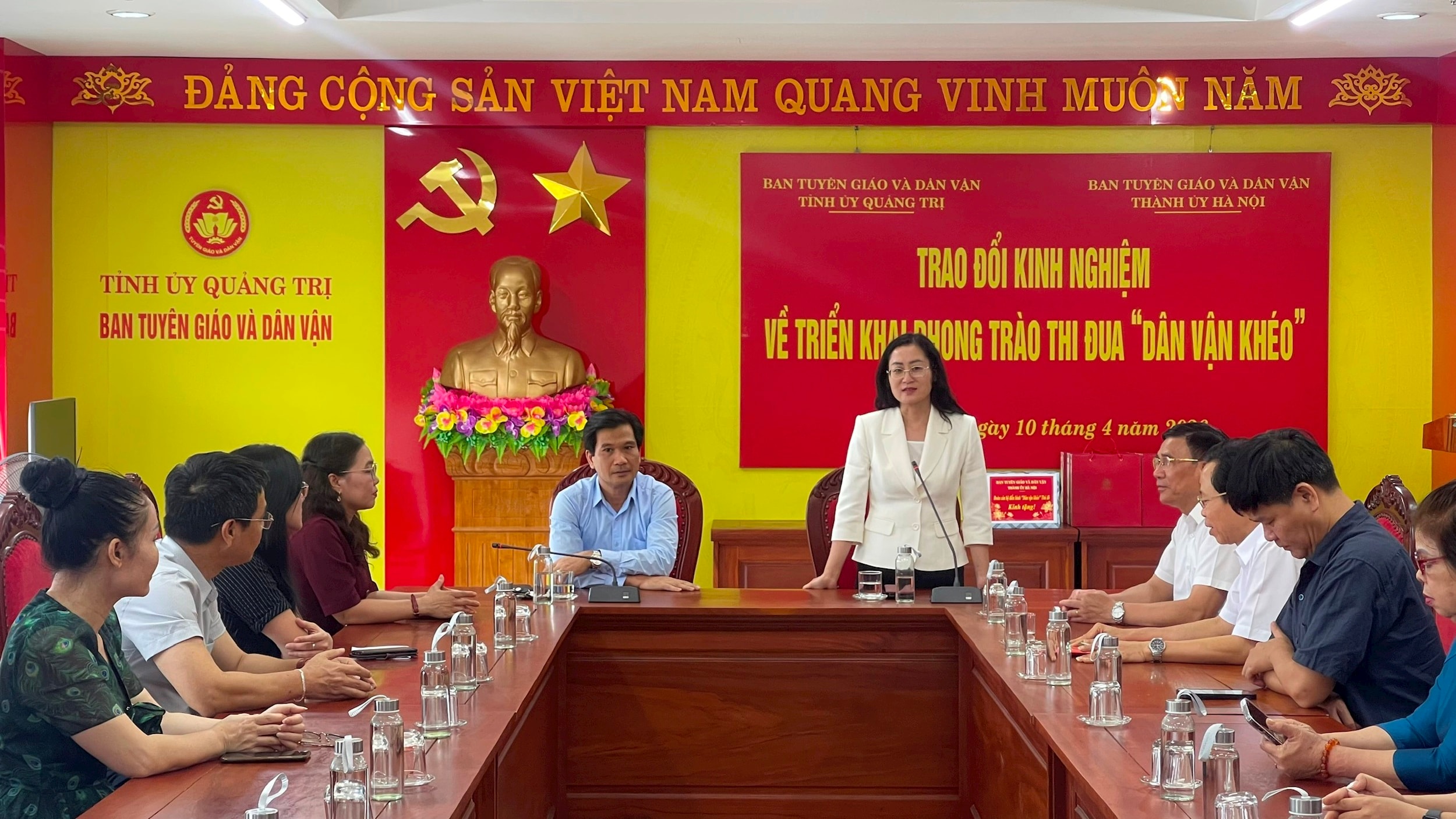 Thay mặt đoàn công tác, Phó Trưởng Ban Tuyên giáo và Dân vận Thành ủy Hà Nội Nguyễn Thị Huệ trân trọng cảm ơn sự đón tiếp chu đáo của tỉnh Quảng Trị, đồng thời thông tin một số kết quả nổi bật trong công tác dân vận của Thủ đô.