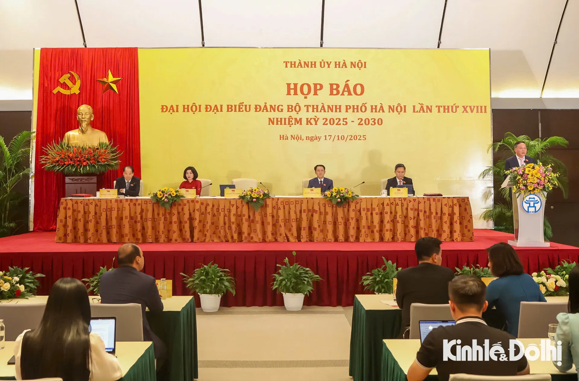 Tại cuộc họp báo diễn ra ngau sau phiên bế mạc Đại hội đại biểu Đảng bộ thành phố Hà Nội khóa XVIII, nhiệm kỳ 2025-2030, Phó Bí thư Thường trực Thành ủy Hà Nội Nguyễn Văn Phong thay mặt các đồng chí lãnh đạo thành phố trả lời các câu hỏi của phóng viên báo chí nêu tại họp báo theo các nhóm vấn đề.