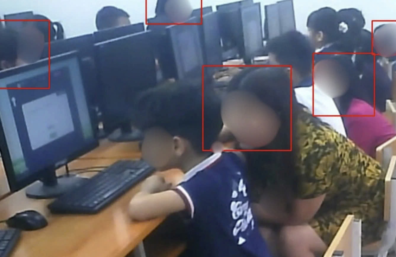 Hình ảnh chụp từ camera ghi lại cảnh giám thị hỗ trợ thí sinh làm bài. Ảnh: BTC.