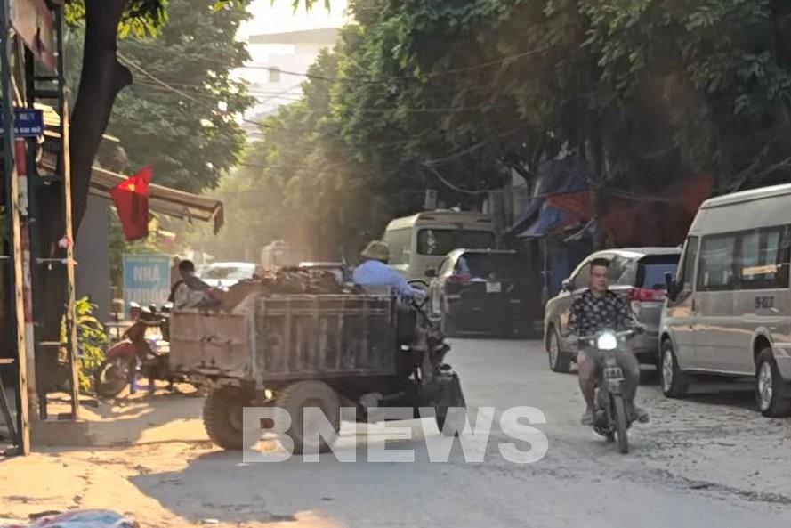 Theo Nghị quyết 32/2007/NQ-CP của Chính phủ, từ ngày 1/1/2008, xe công nông, xe tự chế ba, bốn bánh bị đình chỉ lưu hành trên toàn quốc, nhưng tại phường Đại Mỗ, Hà Nội xe công nông vẫn lộng hành nhiều năm nay, gây ô nhiễm tiếng ồn, vật liệu xây dựng vương vãi, bụi và khí thải mù mịt mỗi khi xe chạy qua. Ảnh: Phú Vinh/BNEWS/TTXVN