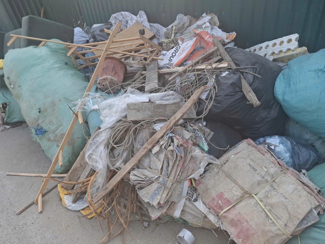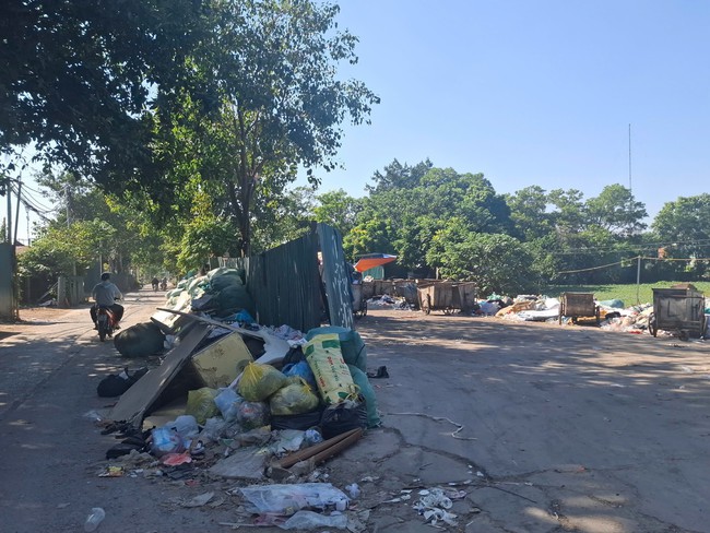 Mặc dù khu vực tập kết rác đã được quây rào tôn để hạn chế mùi và tránh rác tràn ra ngoài, nhưng thực tế ghi nhận cho thấy xung quanh điểm tập kết lại xuất hiện nhiều bãi rác tự phát, tràn xuống cả mặt đường bê tông.