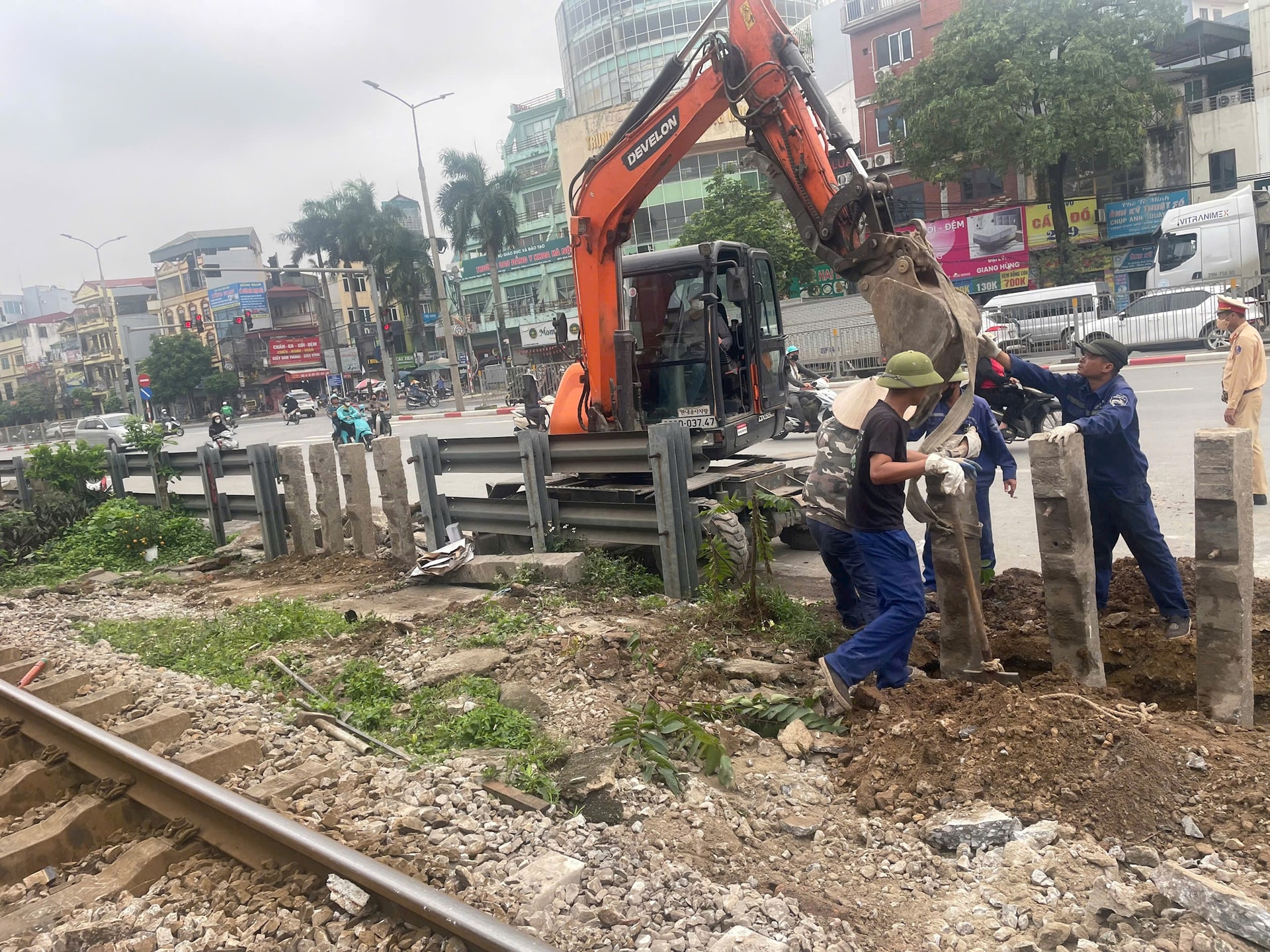 Cũng trong ngày, Đội CSGT đường bộ số 14 phối hợp với Công ty quản lý đường sắt và chính quyền địa phương rào chắn hàng loạt lối đi tự phát qua đường sắt. Ảnh: Phạm Công