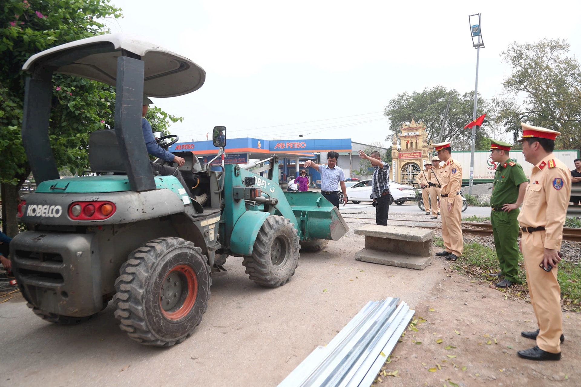 Sáng 30-3, Đội CSGT đường bộ số 8, Phòng CSGT Hà Nội phối hợp với Đội CSGT đường sắt số 1, Phòng 6, Cục CSGT và UBND xã Phú Xuyên đóng hàng loạt lối đi tự mở qua đường sắt đoạn qua địa bàn xã Phú Xuyên. Ảnh: Phạm Công