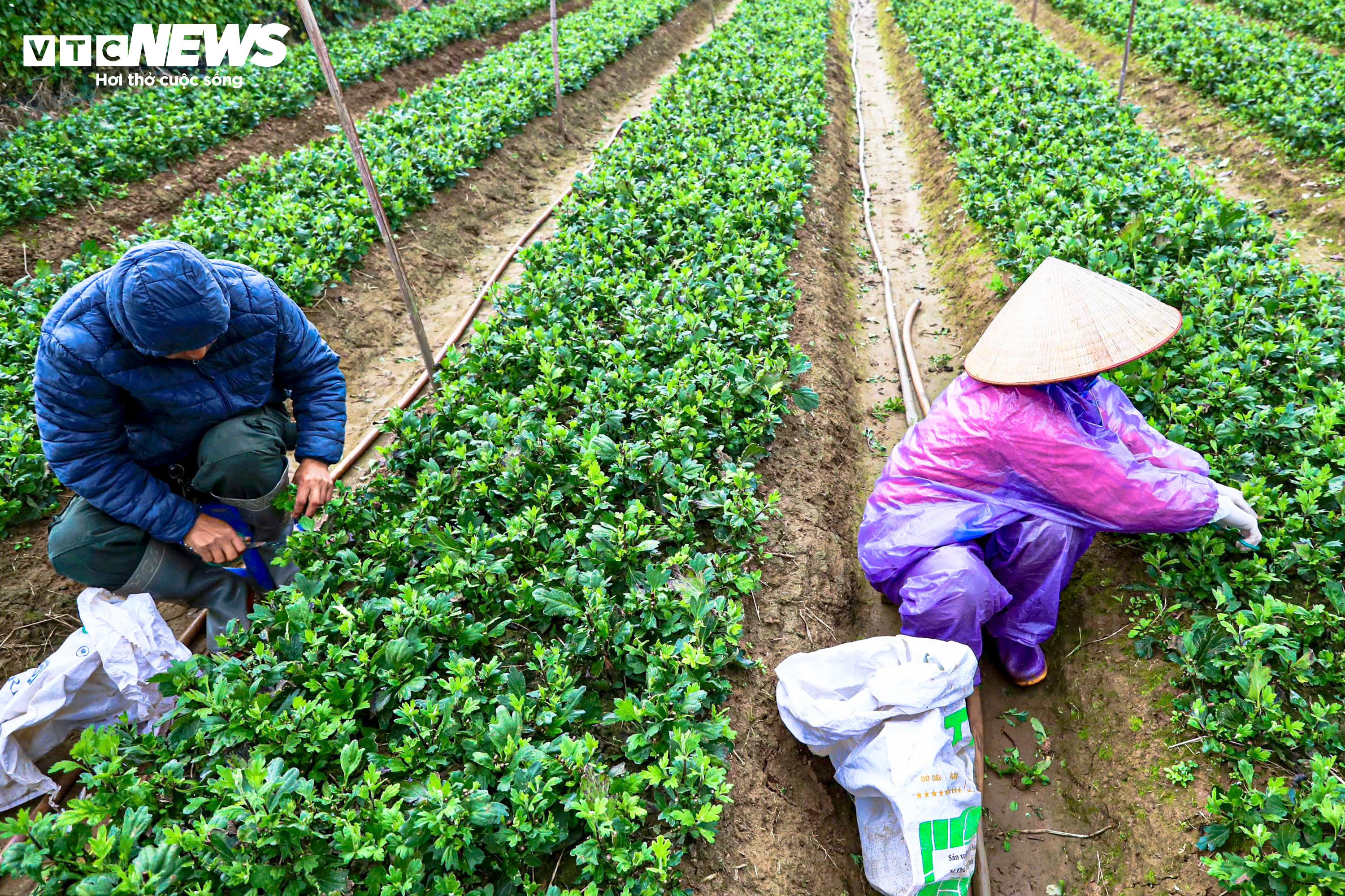 Hà Nội rét 9°C, nông dân trùm áo mưa kín mít ra đồng chăm hoa Tết