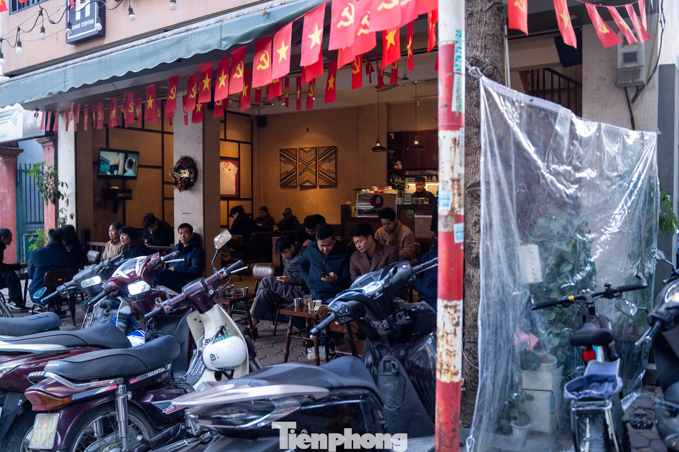 Quán cà phê trên phố Xuân La phải quây bạt kín mít mặt tiền, tạo không gian kín gió cho khách ngồi bên trong.
