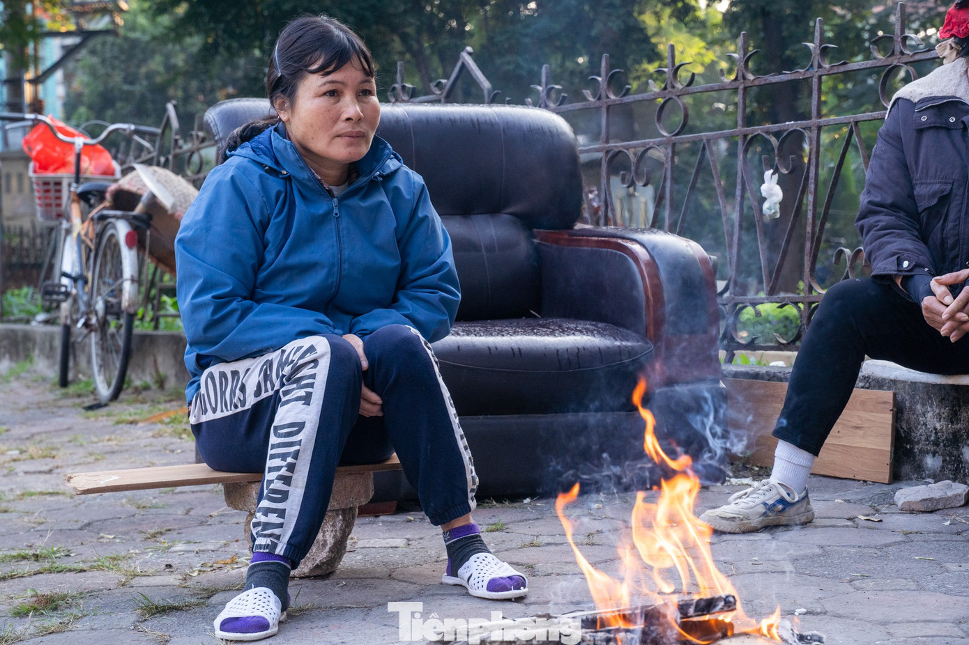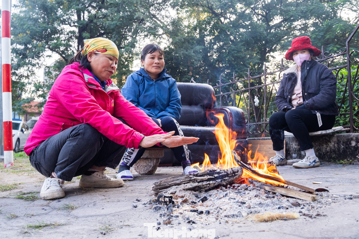 Góc chân cầu Long Biên đêm rét: Người lao động tụm năm tụm ba bên ánh lửa để xua đi cái lạnh.
