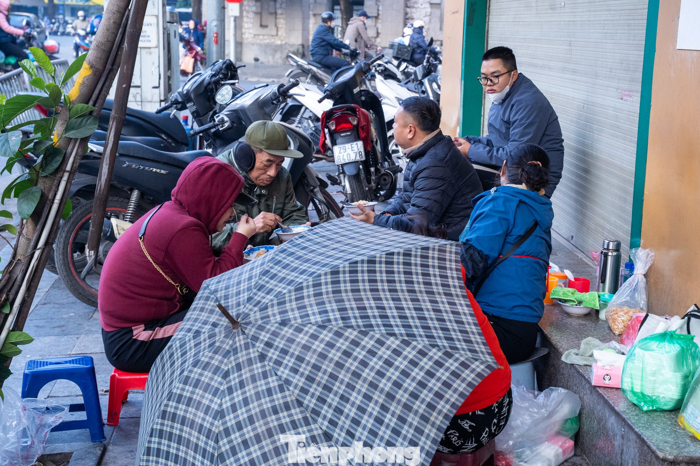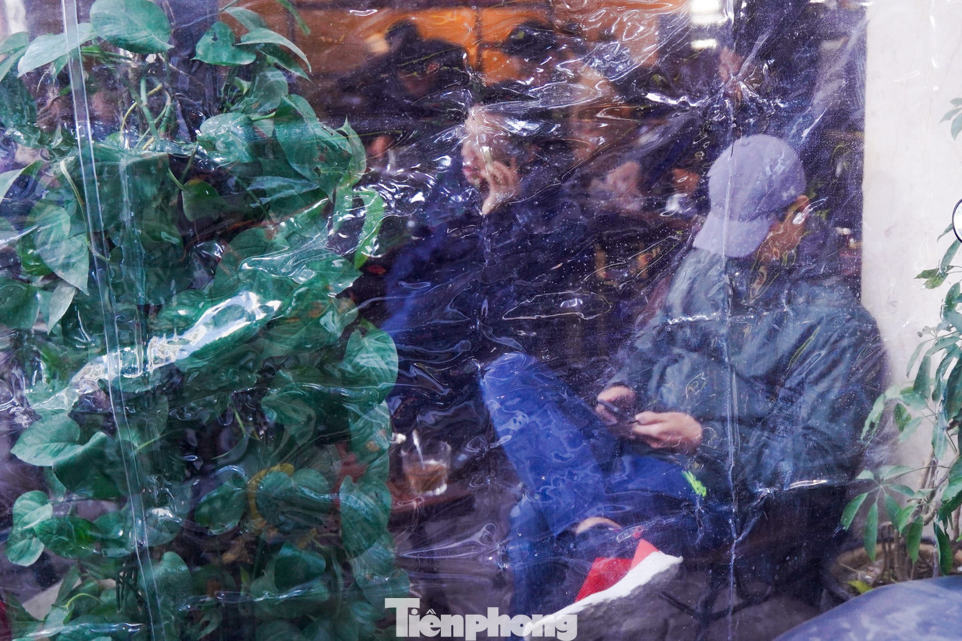 Hàng quán vỉa hè căng ô, quây bạt chống chọi với gió rét.