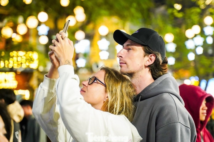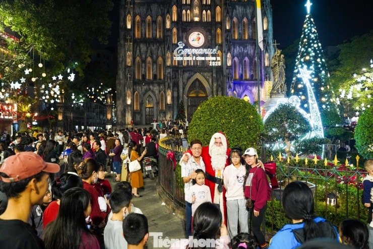 Không gian lễ hội tại trung tâm Hà Nội không chỉ thu hút người dân địa phương mà còn là điểm đến yêu thích của nhiều du khách quốc tế. Hình ảnh những 'ông già Noel' xuất hiện trên phố nhanh chóng trở thành tâm điểm, thu hút đông đảo mọi người vây quanh để chụp hình lưu niệm.