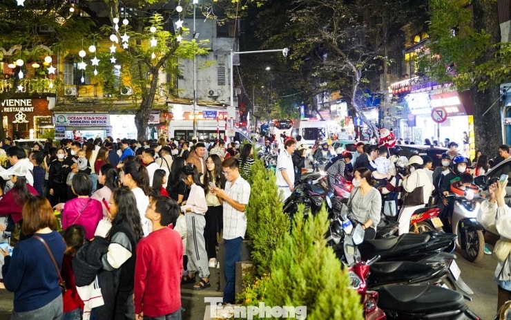 Các tuyến phố dẫn về phía nhà thờ như Nhà Chung, Hàng Trống, Ấu Triệu và Lý Quốc Sư đều ghi nhận tình trạng đông đúc, gần như không còn chỗ trống. Nhiều nhóm bạn trẻ và gia đình đã lựa chọn đi chơi sớm để tránh cảnh chen lấn quá tải trong đêm chính lễ.