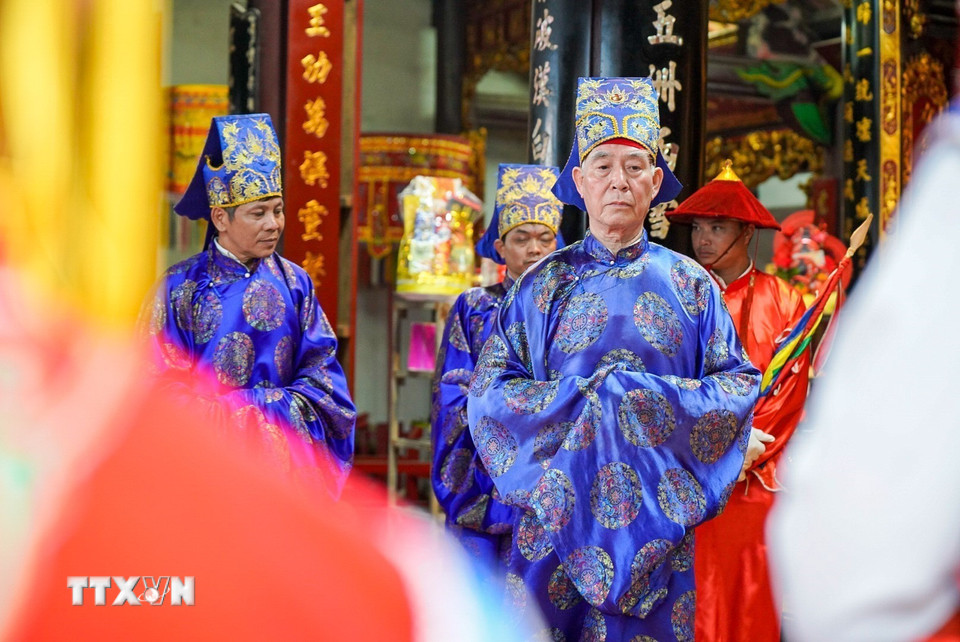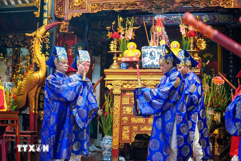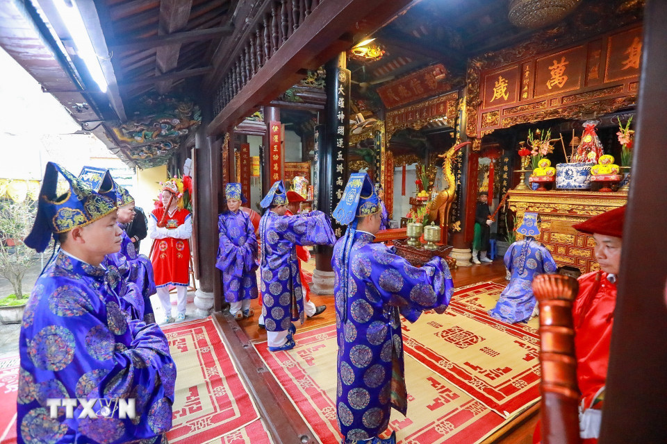 Thực hiện nghi thức lễ Thánh tại Đại đình. (Ảnh: Khánh Hòa/TTXVN)