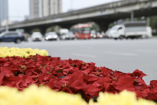 Tại các nút giao thông lớn, các cụm mô hình trang trí chào mừng được dựng với kích thước lớn, tạo điểm nhấn không gian đô thị.
