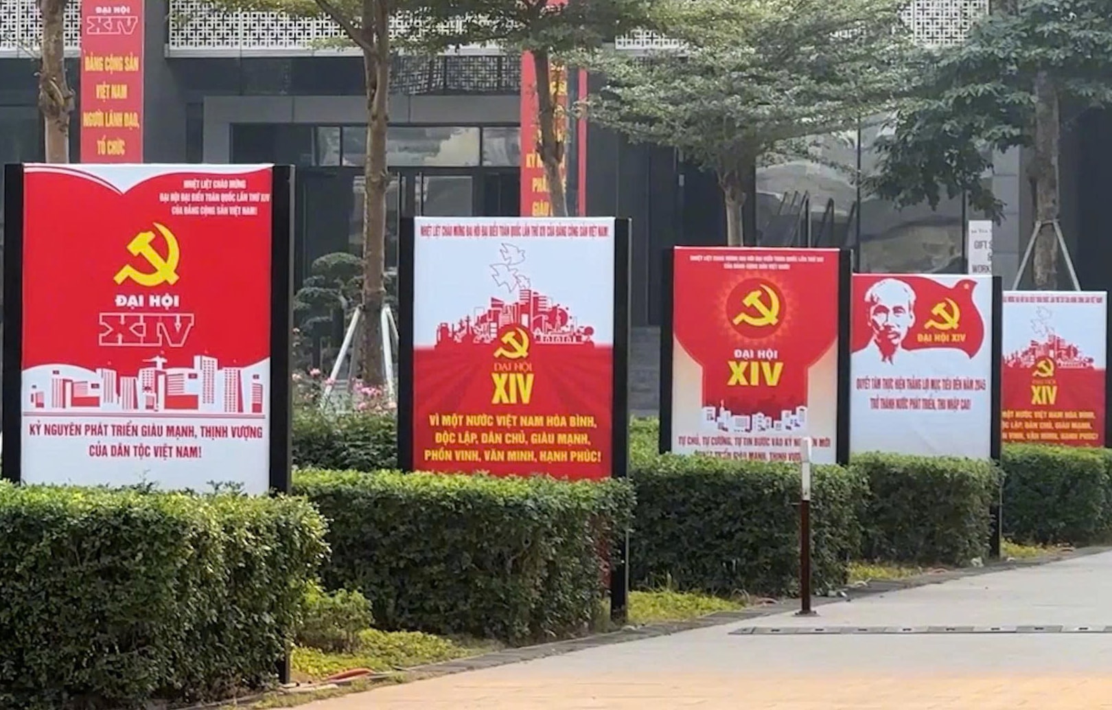 Những băng rôn, khẩu hiệu với nội dung chào mừng Đại hội XIV được trang trí trang trọng, đồng bộ, tạo nên diện mạo tươi mới, khơi dậy niềm tự hào và trách nhiệm công dân trong mỗi người dân.