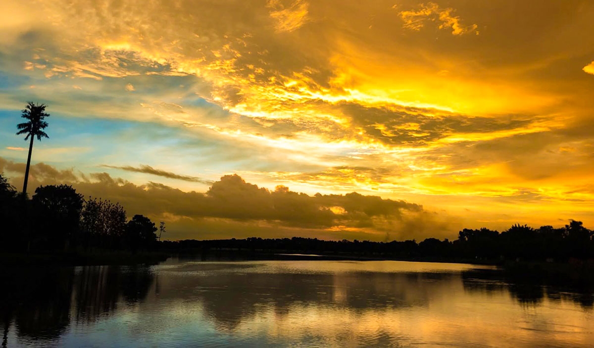 Anh Nguyễn Văn Dương (Định Công, Hà Nội) chia sẻ: "Vào khoảng 5h15 sáng nay, khi vừa mở cửa sổ ra trông thấy bầu trời phủ một lớp ánh vàng rực rỡ, xa xa là cầu vồng kép.