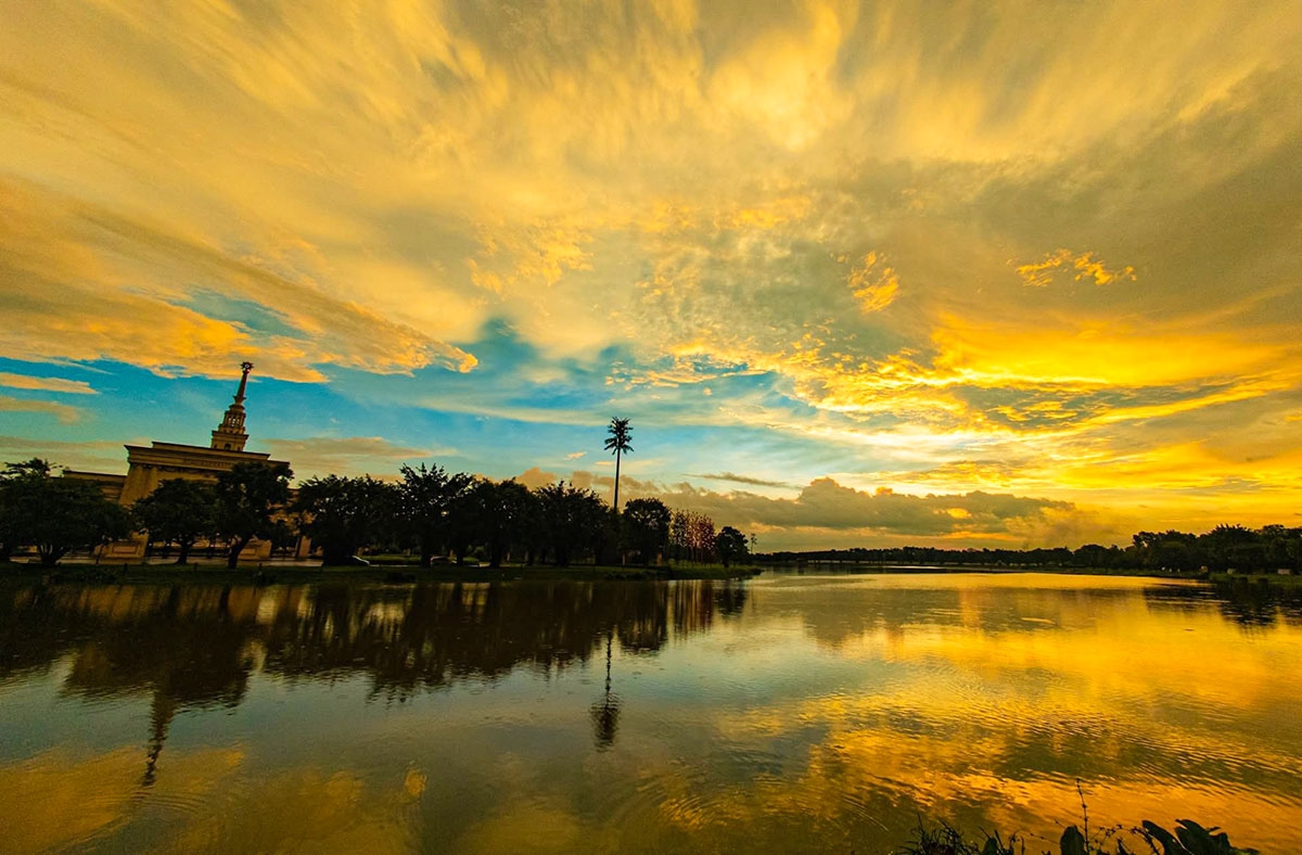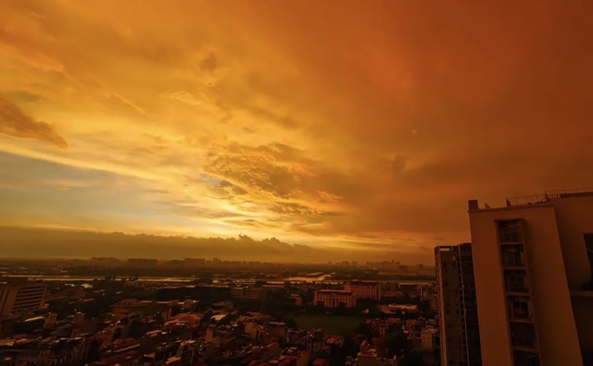 Rạng sáng 16/10, tại Hà Nội và một số địa phương lân cận xảy ra mưa. Sau đó, bầu trời chuyển vàng và xuất hiện cầu vồng kép.