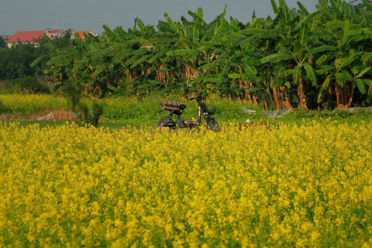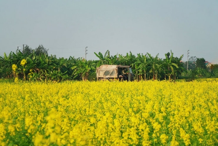 Dọc triền đê sông Đuống thuộc thôn Chi Đông, xã Thuận An, TP Hà Nội, những cánh đồng hoa cải vàng đang bước vào kỳ nở rộ nhất. Đây vốn là khu vực canh tác nông nghiệp của người dân địa phương, nhưng vài năm gần đây đã trở thành điểm đến lý tưởng cho những người yêu thiên nhiên và phong cách chụp ảnh lãng mạn.