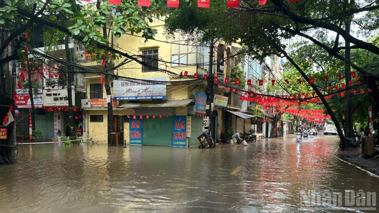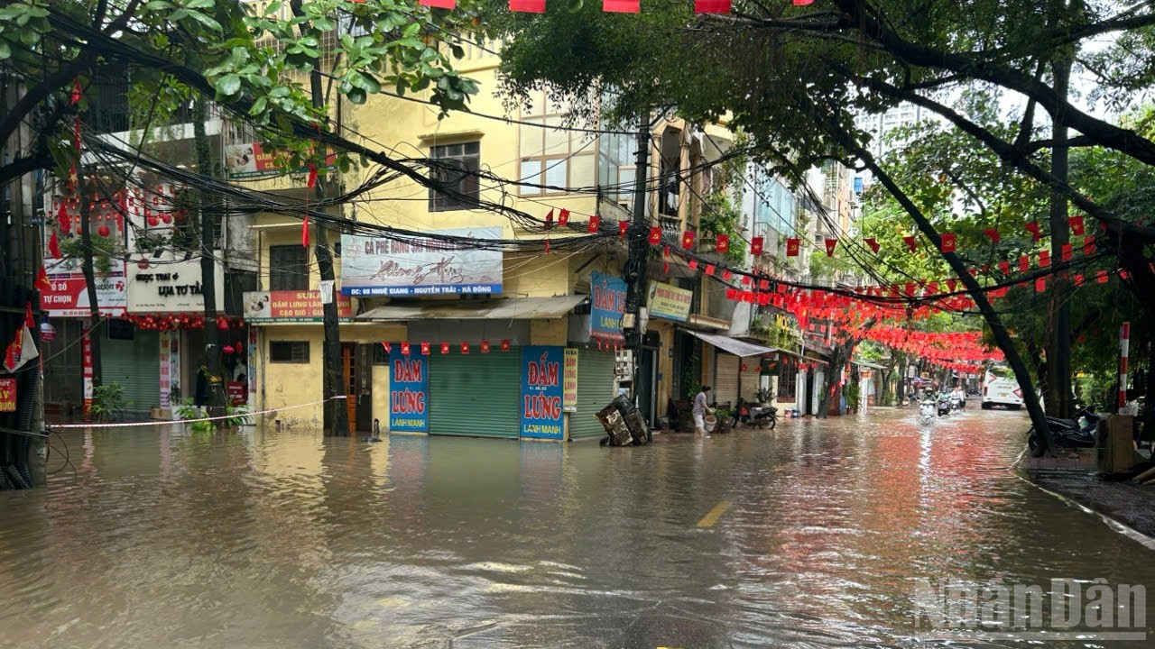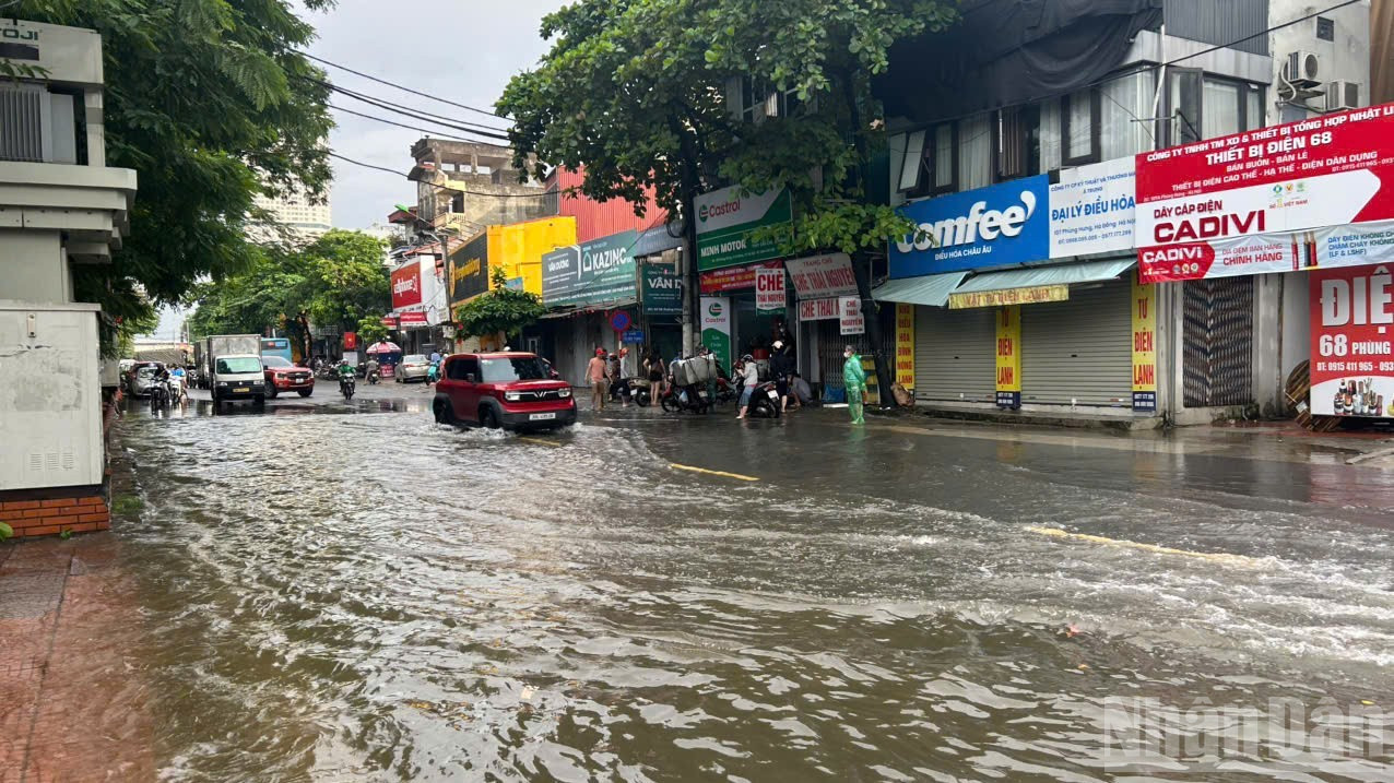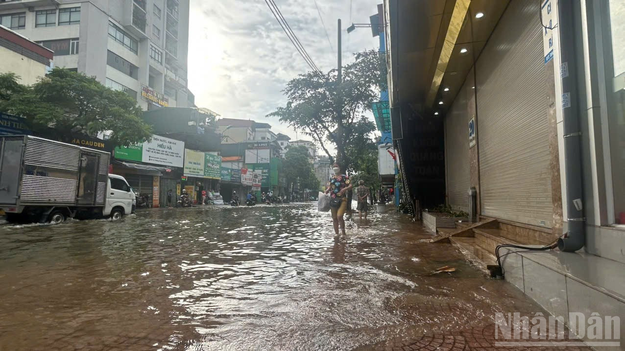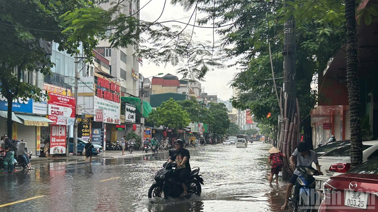 Sáng 1/10, nhiều tuyến phố Hà Nội vẫn ngập sâu.