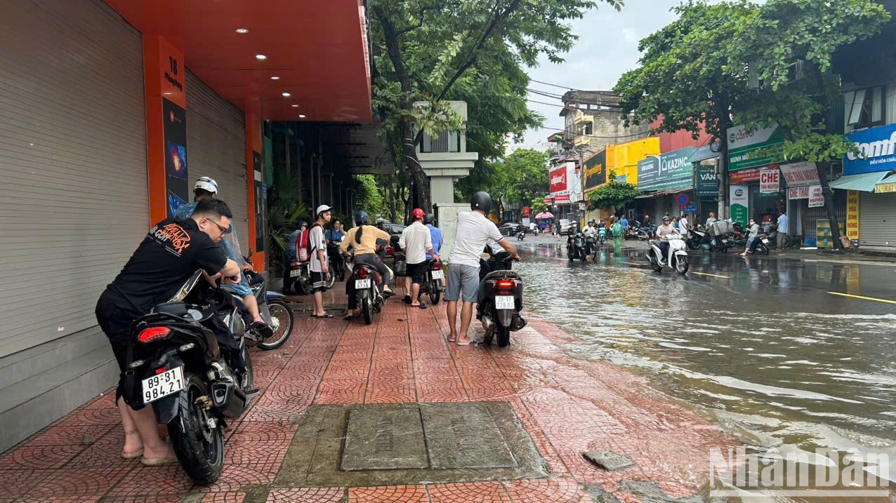 Ghi nhận tại khu vực đường Phùng Hưng (đoạn qua Bệnh viện Quân y 103 đến Bệnh viện K Tân Triều), hình ảnh quen thuộc là người dân lội nước, dắt xe, quay đầu tìm lối đi khác.
