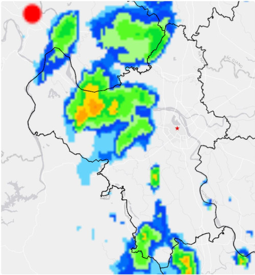 Dự báo, trong khoảng 3 giờ tới, các khu vực nói trên có mưa rào và dông, sau đó mở rộng sang khu vực các phường Yên Nghĩa, Phú Lương, Kiến Hưng, Hà Đông và các khu vực nội thành khác của thành phố Hà Nội.