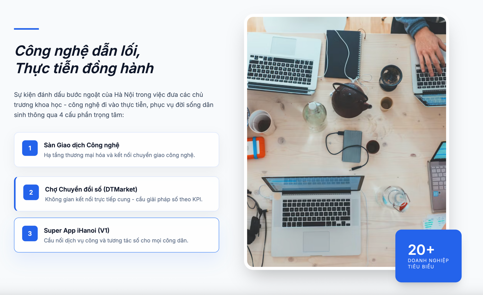 Sàn Giao dịch Công nghệ Hà Nội (HanoTEX): Hạ tầng kết nối và thương mại hóa các sản phẩm khoa học công nghệ.