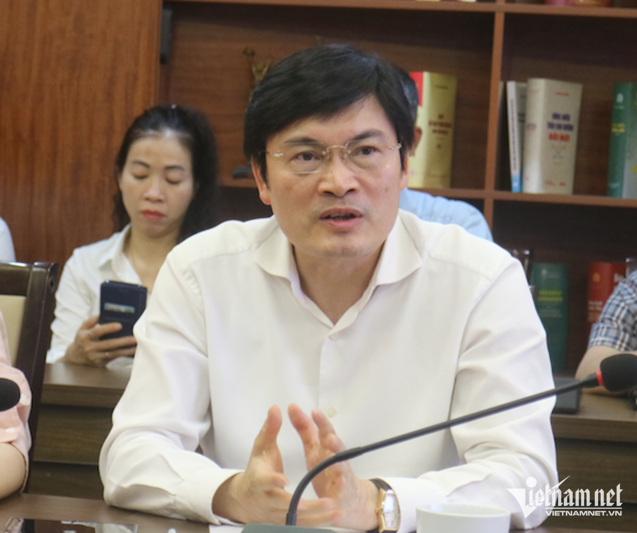 Giám đốc Sở Y tế Hà Nội Nguyễn Trọng Diện phát biểu tại buổi làm việc. Ảnh: N. Huyền