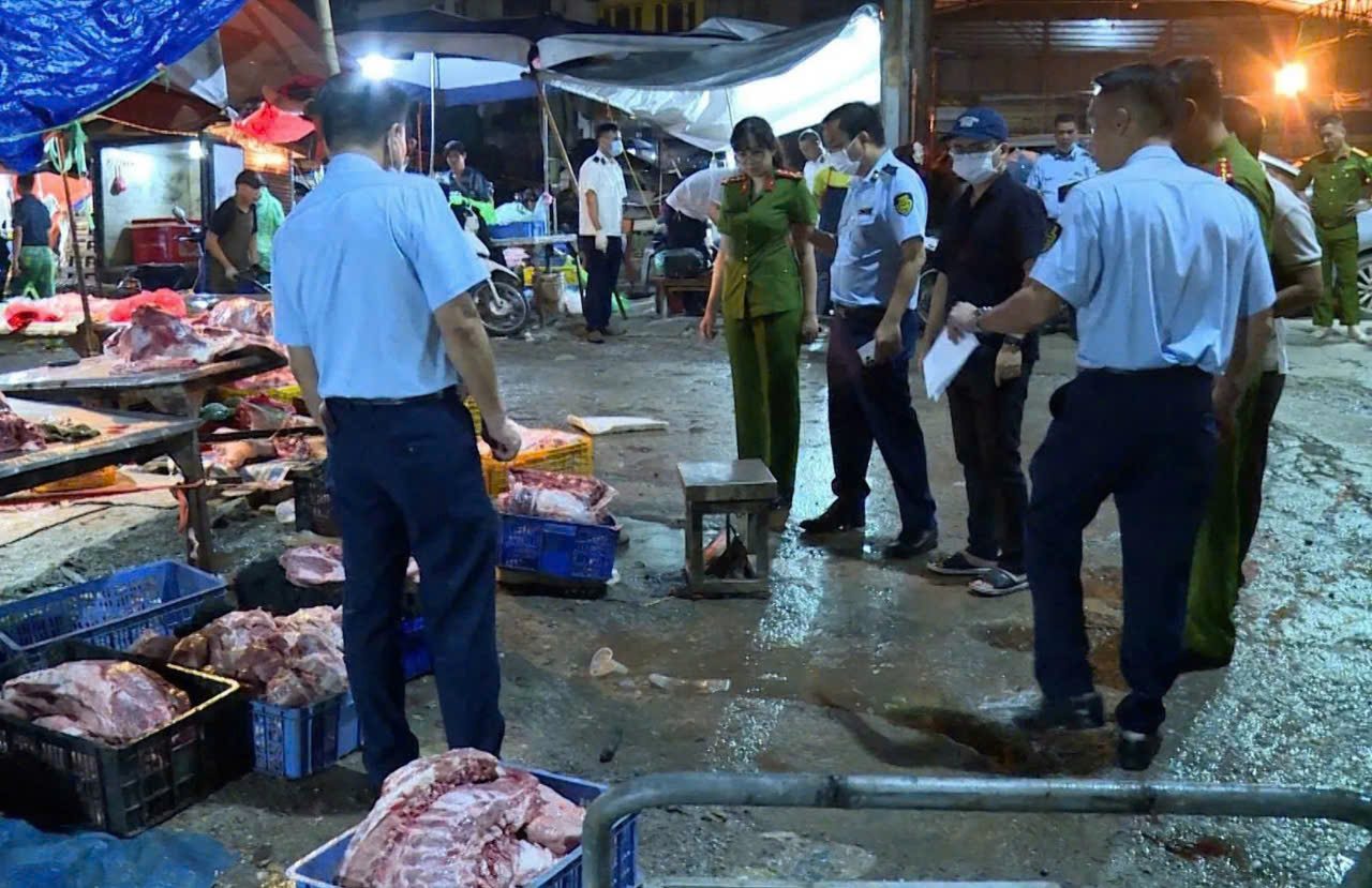 Lực lượng chức năng phát hiện nhiều thịt lợn nhiễm bệnh tiêu thụ ngoài chợ.