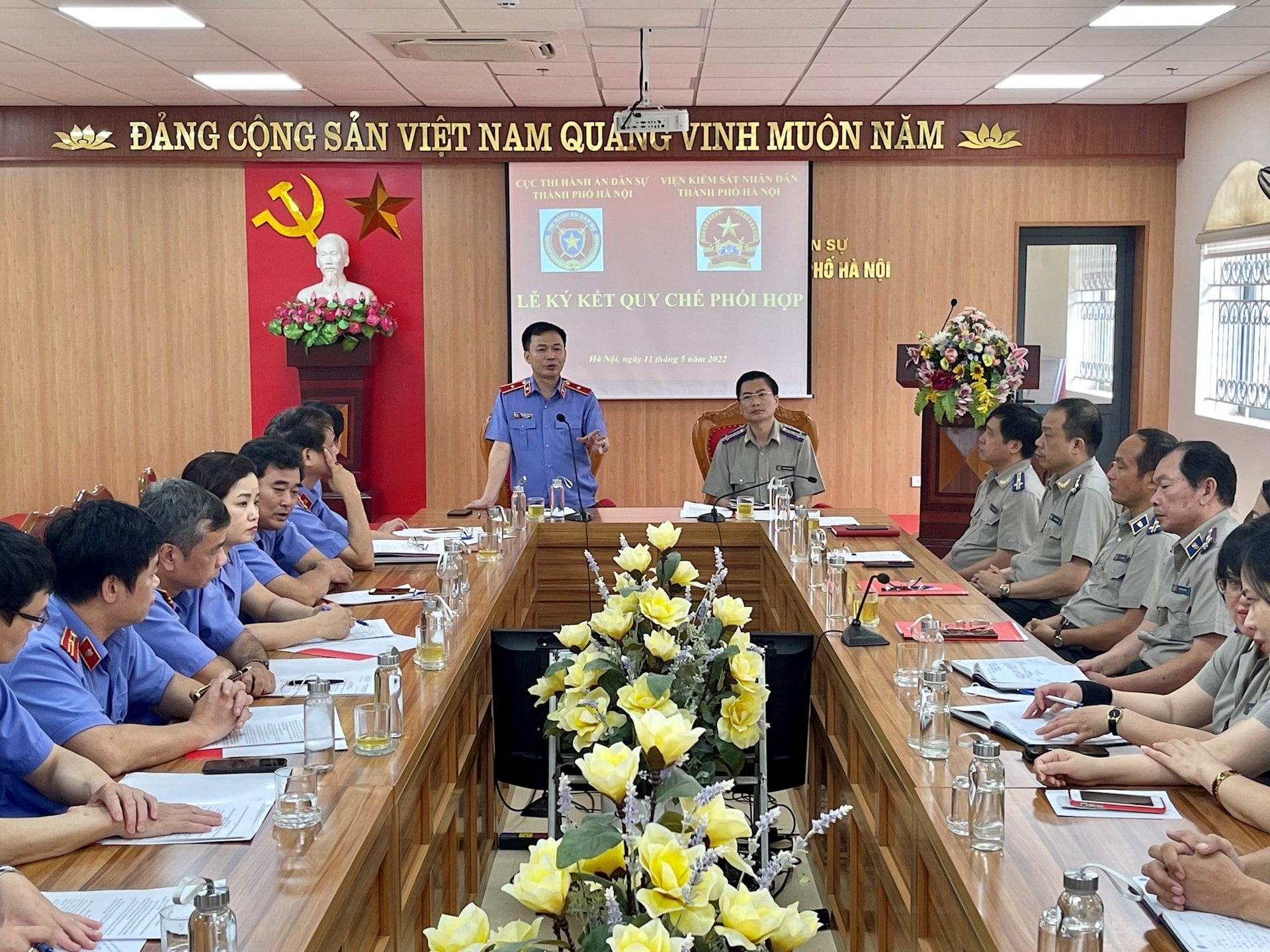 Hội nghị triển khai công tác phối hợp thi hành án tại Hà Nội. Ảnh: Hà Phong