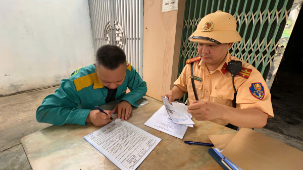 Một trường hợp ký biên bản xử phạt hành chính về lỗi chở vật liệu rời để rơi vãi.