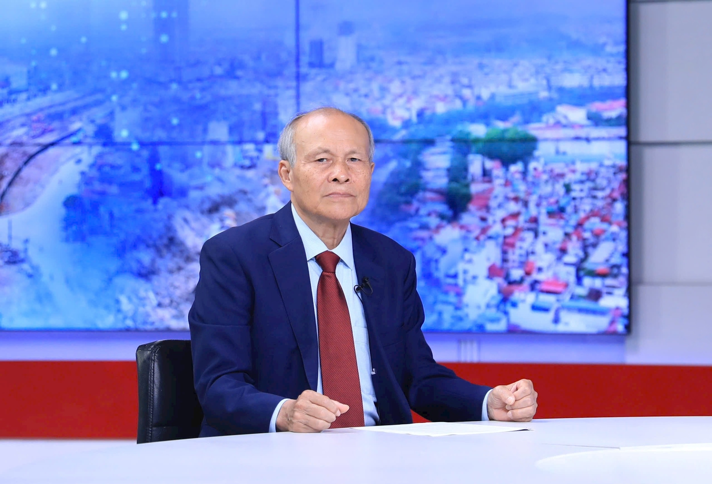 PGS.TS Trần Viết Lưu, nguyên Vụ trưởng Vụ Tổng hợp, Ban Tuyên giáo Trung ương (nay là Ban Tuyên giáo và Dân vận Trung ương) trao đổi tại chương trình thời sự trực tiếp của Cơ quan Báo và Phát thanh, truyền hình Hà Nội về chủ đề "Hà Nội siết kỷ luật để tăng tốc dự án trọng điểm” diễn ra tối 27-4-2026. Ảnh: Quang Thái