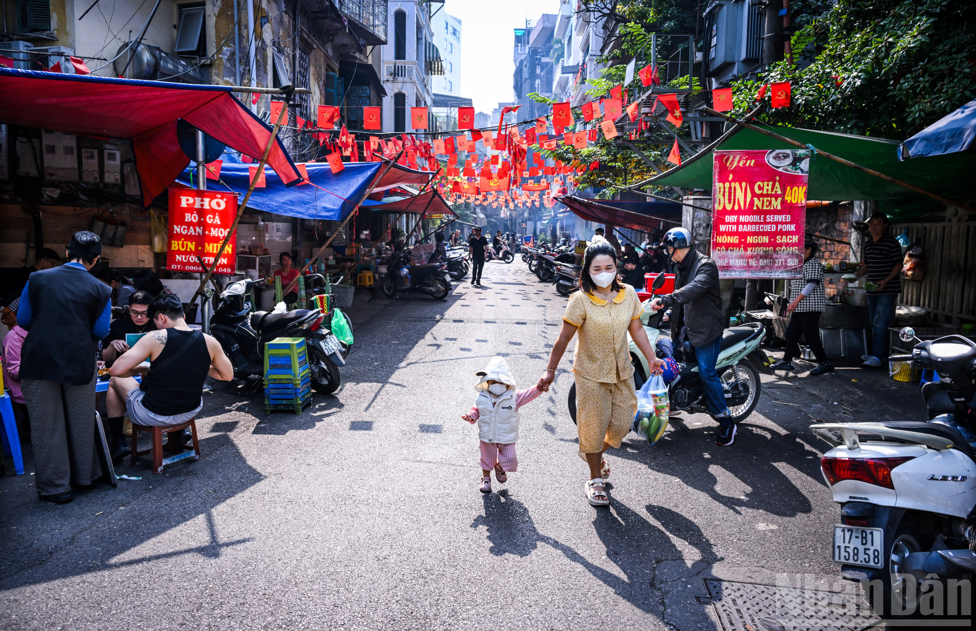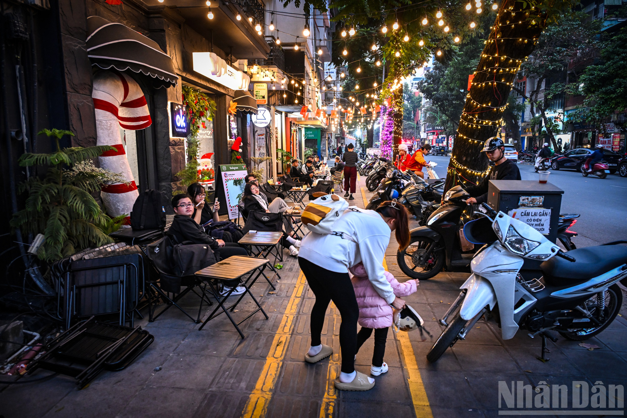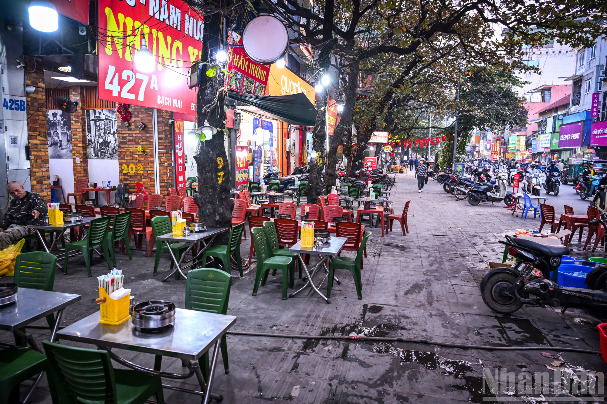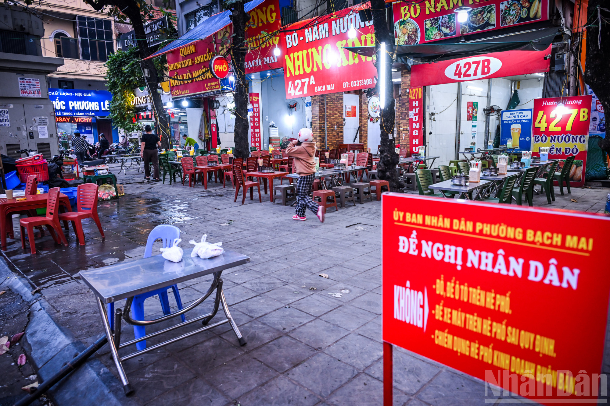 Theo ghi nhận của phóng viên Báo Nhân Dân, tại nhiều tuyến phố trung tâm trên địa bàn Thủ đô như: phố Nguyễn Thái Học, phố Đồng Xuân, phố Hàng Khoai,... nhiều hàng quán vẫn đặt dãy bàn sát mép đường, khách ngồi san sát, xe máy dựng tràn lan khiến người đi bộ không còn lối đi.