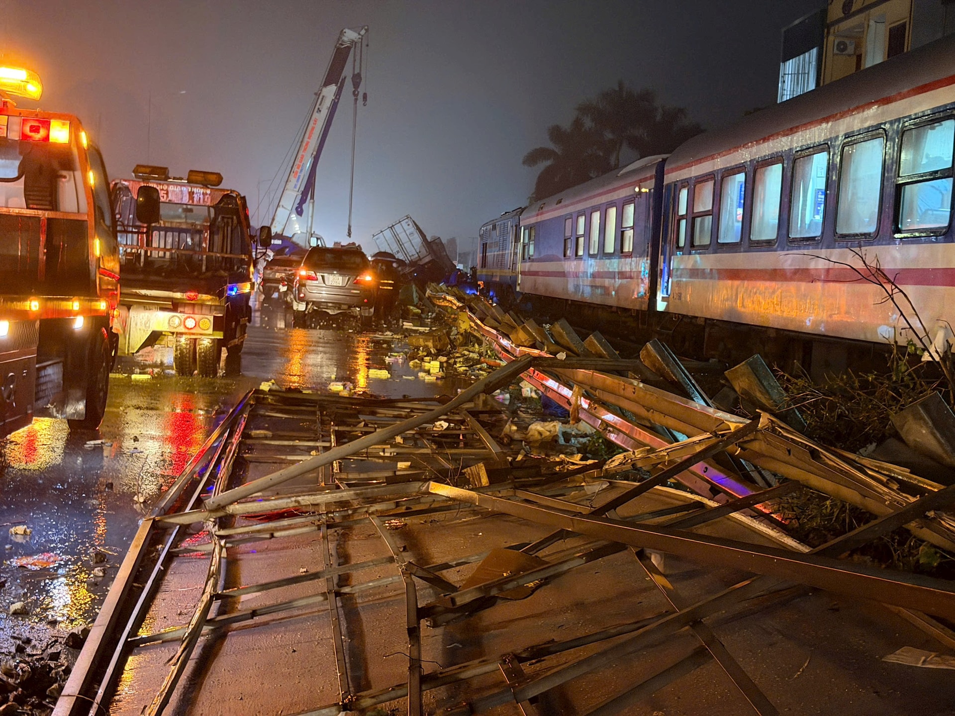 Tại hiện trường, cú va chạm mạnh đã khiến xe tải biển kiểm soát 29H-792.xx bị vò nát, văng xa gần 100m; tàu SE3 bị hư hỏng nặng phần đầu và dải hộ lan bị đổ.