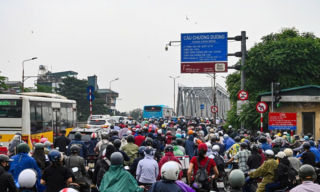 Ghi nhận của phóng viên cho thấy, kể từ khi cầu Long Biên chính thức cấm xe từ ngày 28/3, áp lực giao thông lập tức dồn về cầu Chương Dương và các tuyến đường lân cận, khiến tình trạng ùn tắc kéo dài, đặc biệt trong khung giờ cao điểm.