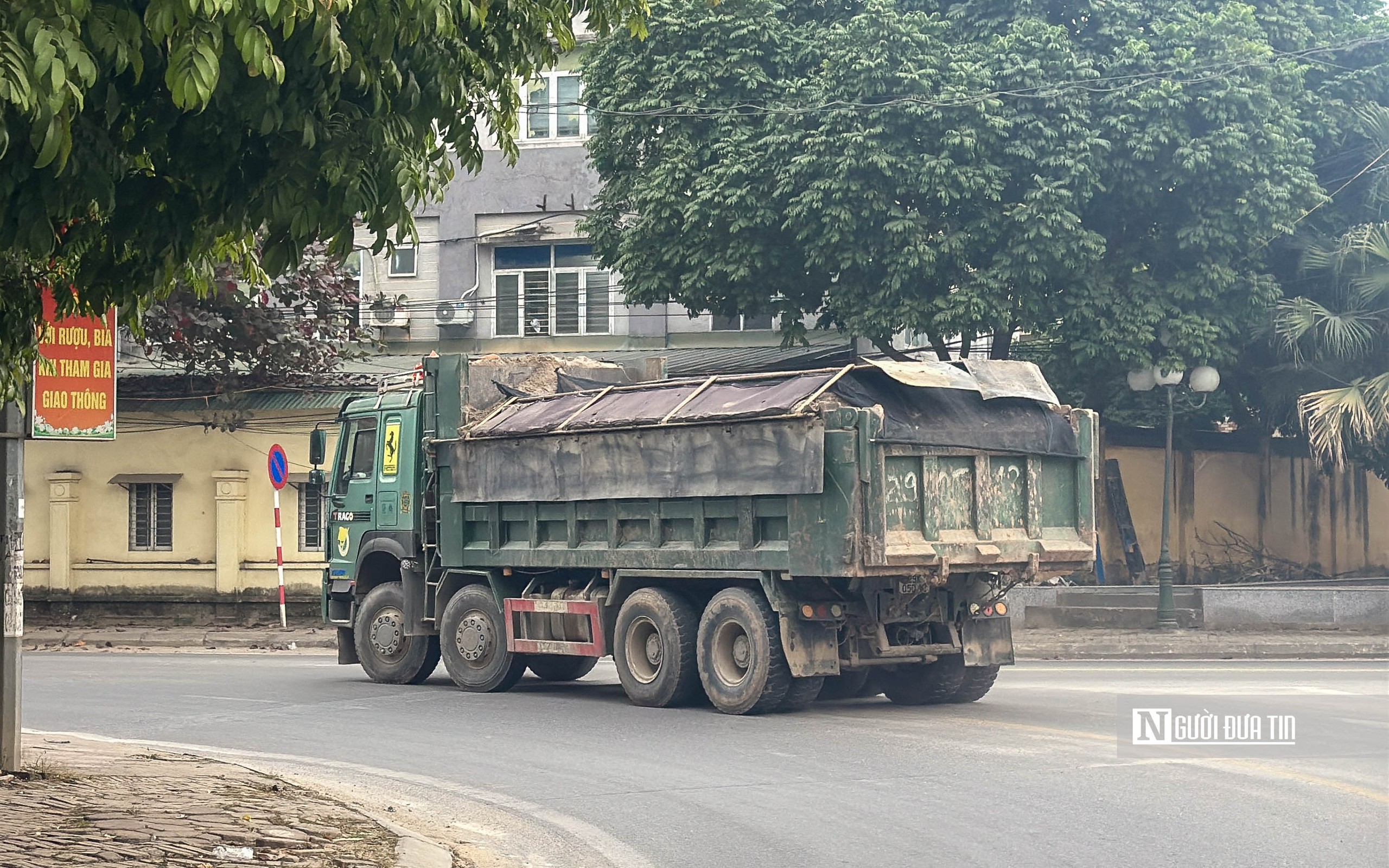 Những chiếc xe tải hạng nặng chở vật liệu xây dựng có dấu hiệu vượt quá tải trọng cho phép vẫn lưu thông công khai, gây tiếng ồn, khói bụi và tiềm ẩn nguy cơ tai nạn cao.