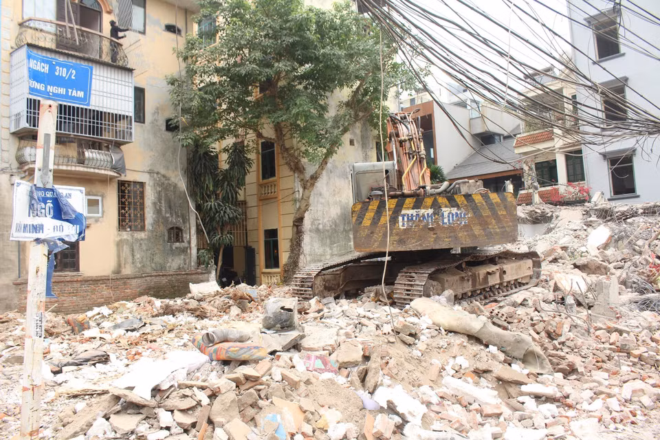 Khu vực cuối ngõ 310 Nghi Tàm đã cơ bản xong phần tháo dỡ các công trình. (Ảnh: Nguyễn Thắng/TTXVN)