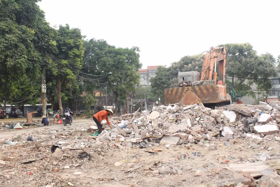 Khẩn trương tháo dỡ các công trình để bàn giao mặt bằng "sạch" phục vụ thi công cầu Tứ Liên. (Ảnh: Nguyễn Thắng/TTXVN)