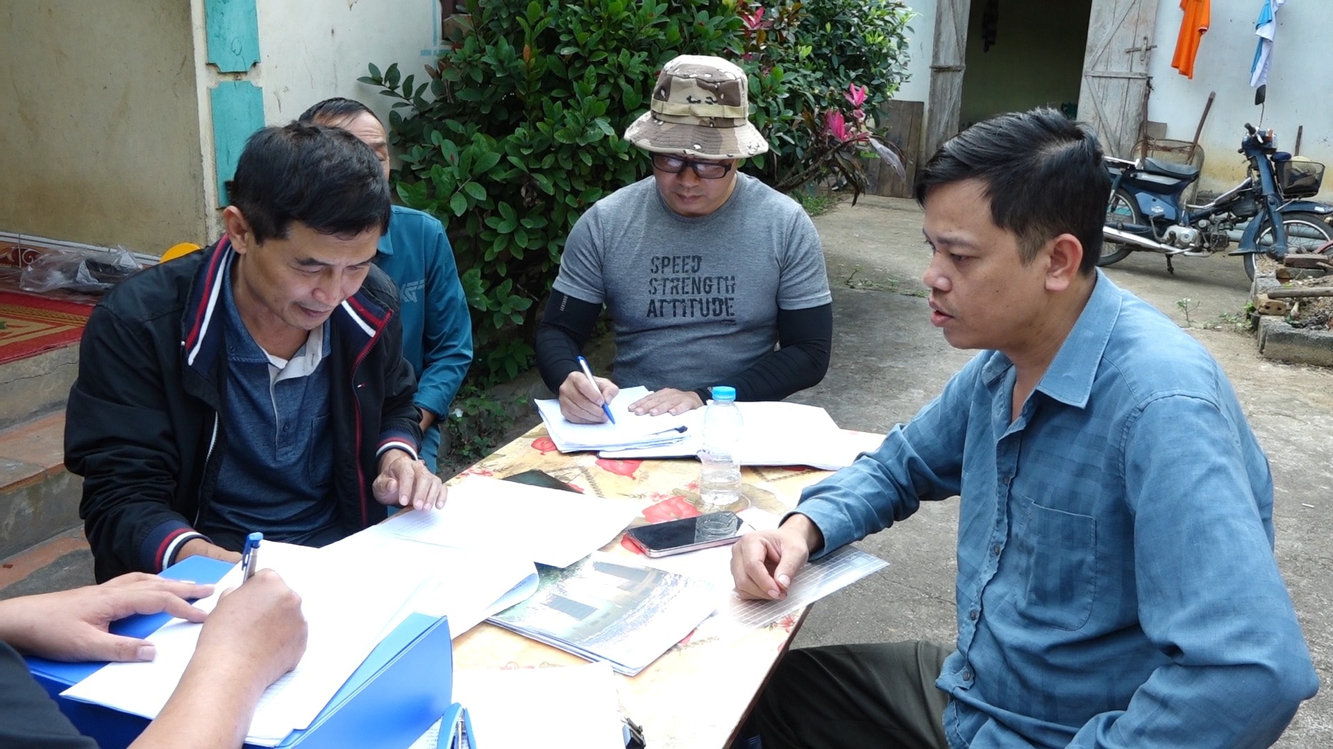 Cán bộ xã Hòa Lạc rà soát, kiểm tra dữ liệu đất đai trên địa bàn. Ảnh: Xã Vât Lại