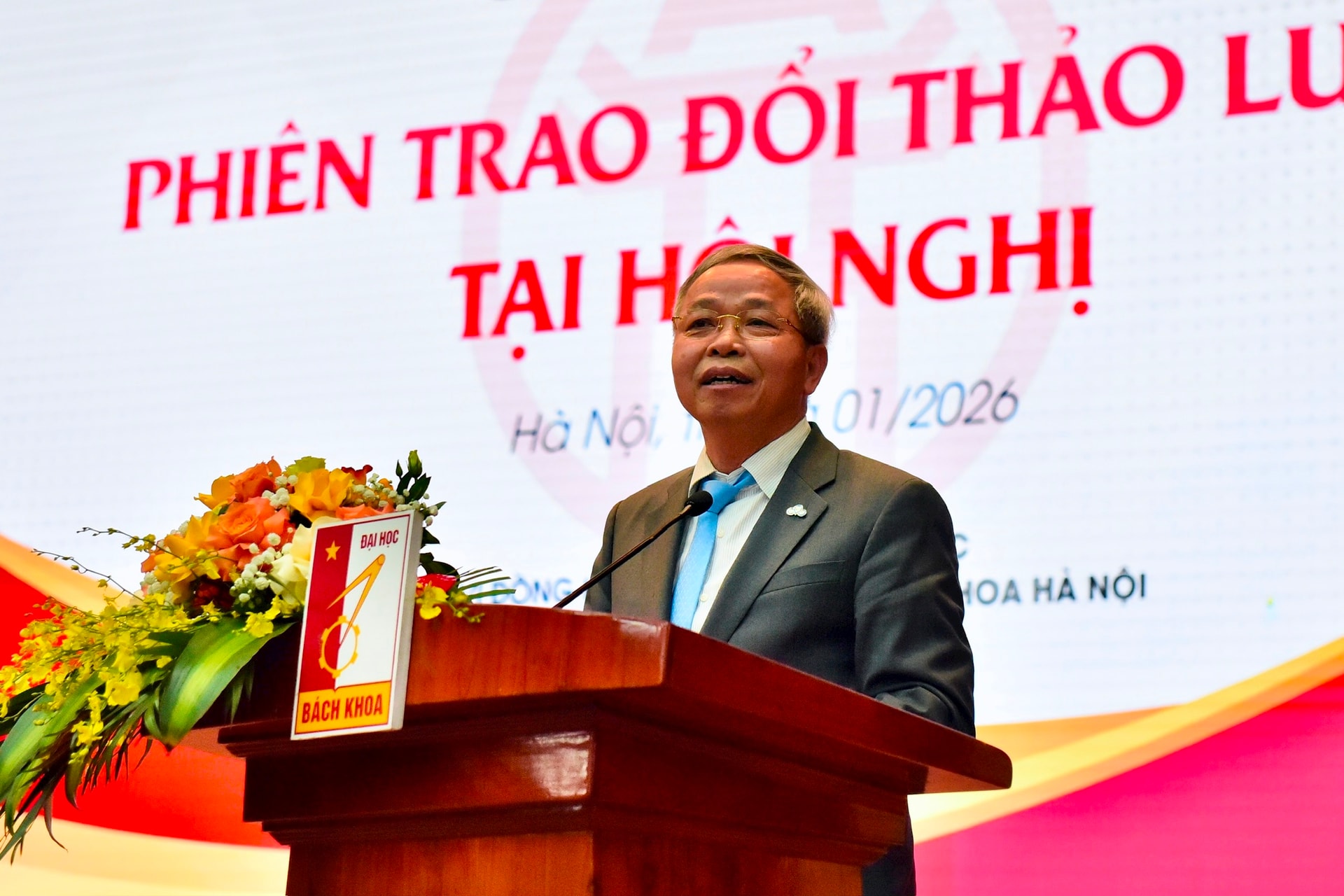 GS.TS Lê Anh Tuấn, Bí thư Đảng ủy Đại học Bách khoa Hà Nội tham luận tại hội nghị. Ảnh: Phan Anh