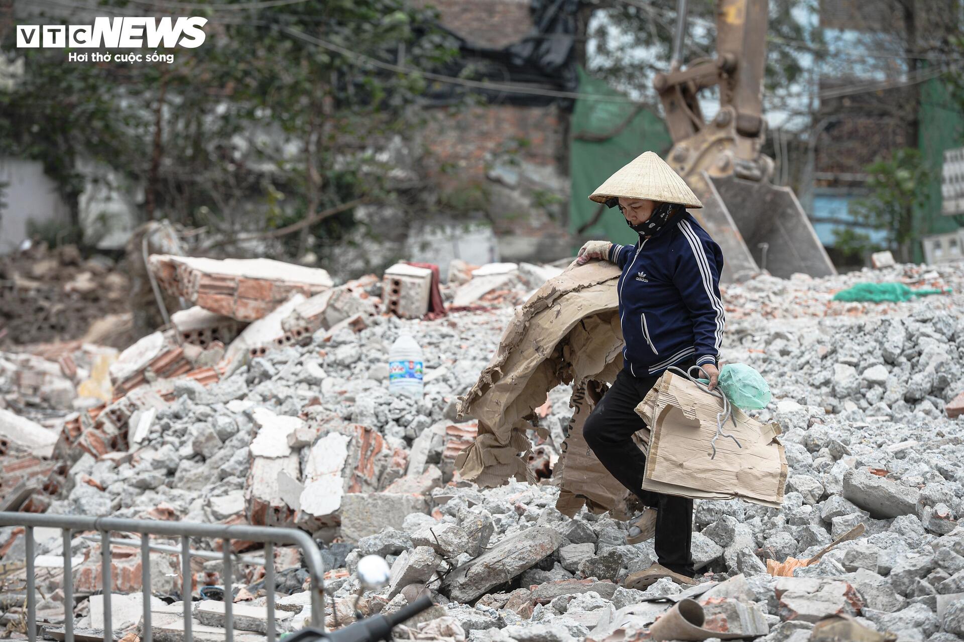 Người thu mua phế liệu tranh thủ thu gom sắt thép, vật liệu còn lại sau khi các công trình trong diện giải tỏa bị phá dỡ tại khu vực dự án đường Vành đai 2,5.