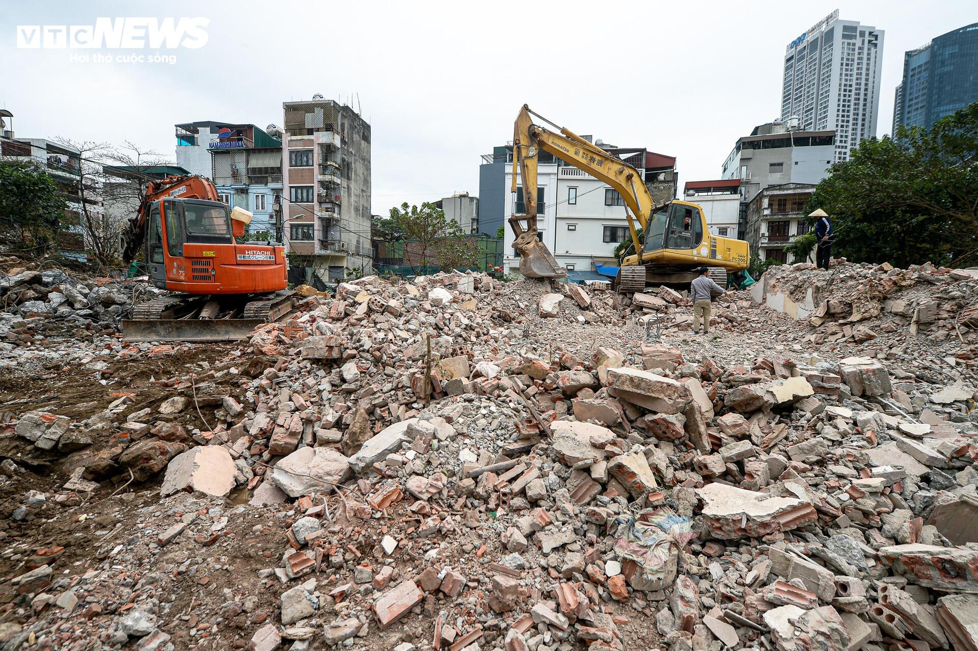 Ghi nhận của PV Báo Điện tử VTC News sáng 3/3 tại khu vực từ đường Cầu Giấy vào Khu đô thị mới Dịch Vọng (phường Cầu Giấy), nhiều máy xúc, xe tải được huy động để tháo dỡ các hạng mục cuối cùng.