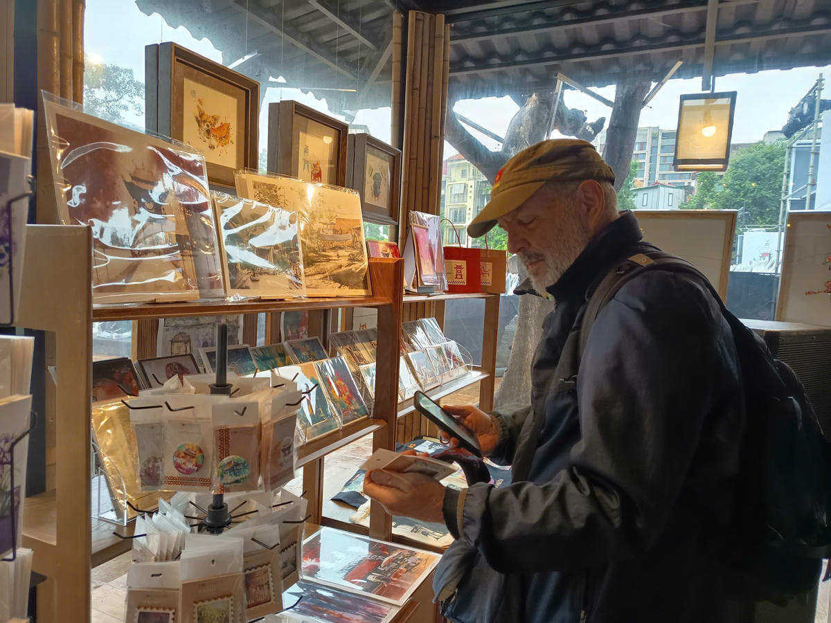 Trong không gian triển lãm còn diễn ra nhiều hoạt động trải nghiệm như in chữ trên giấy gió... Ảnh: Phạm Sỹ.
