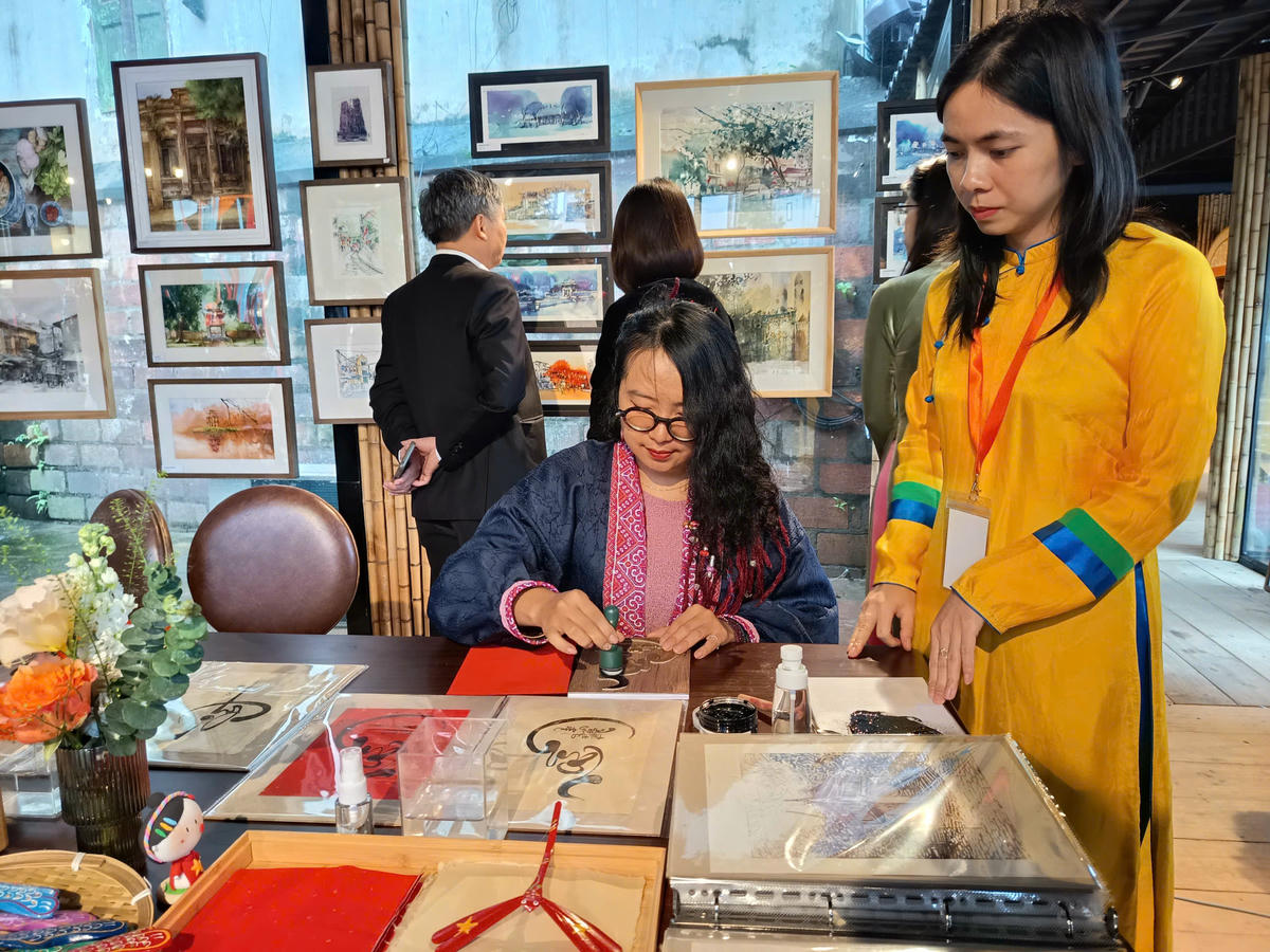 Các workshop sáng tạo như “Ghép ý tưởng – in sắc màu”, “Sắc họa trên vành nón lá”, hay “Dấu ấn vàng son” cho phép người tham gia chạm, làm và sống cùng nghệ thuật. Từ đó, hội họa không chỉ còn là hình ảnh treo trên tường mà trở thành một phần của đời sống.